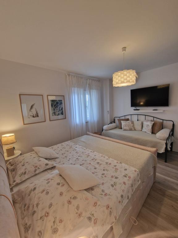 Mi maradt a Marica helyét, június elején. Csodálatos helyen, kilátással Adriai-tenger, szemben a 16. századi templom a harang finoman emlékeztetve minket a múlt. Mi tetszett. Kis bolt az utca túloldalán. Marica egy csodálatos házigazda, minket otthon érezheti magát, valójában több, mint, hogy ő tette érezzük, mintha mi is része az ő családja, Tiszta mutatós szobák, ízlésesen berendezett.