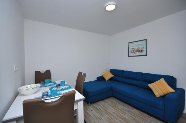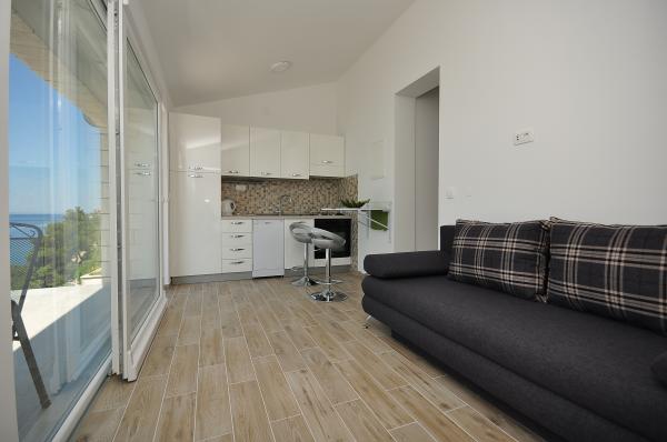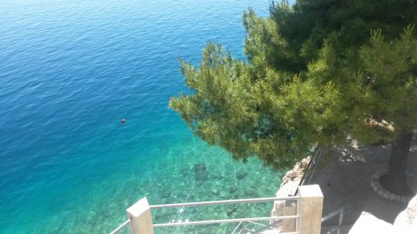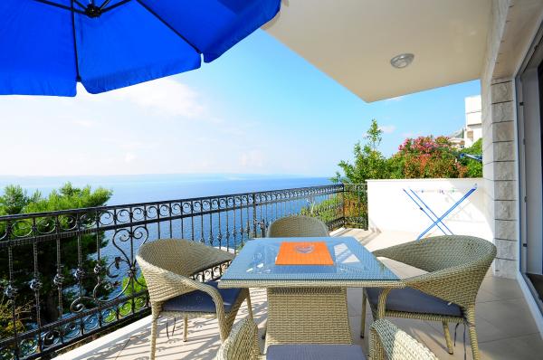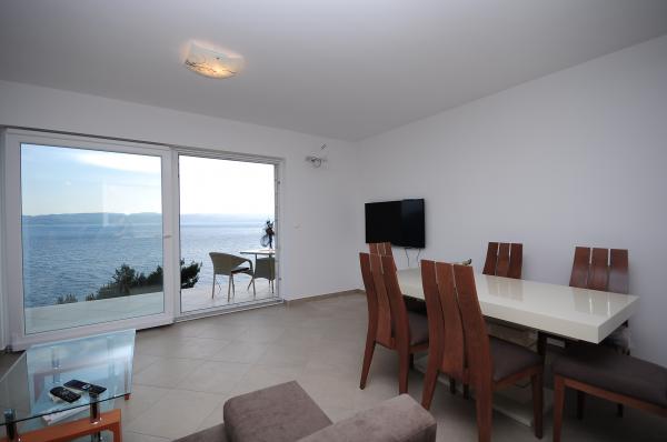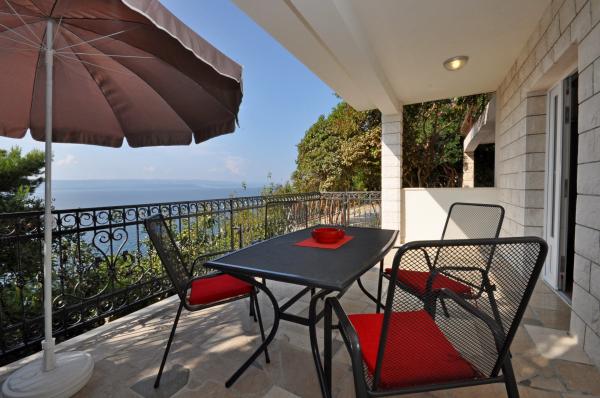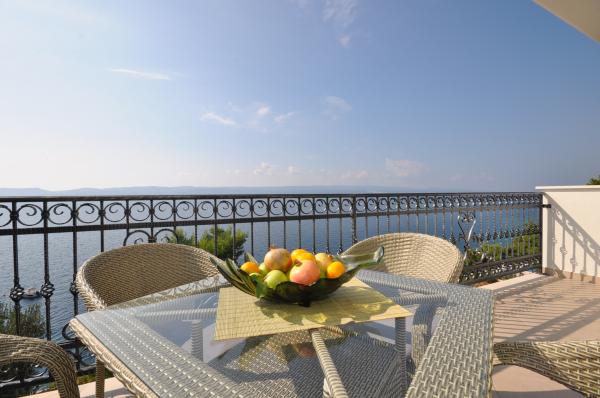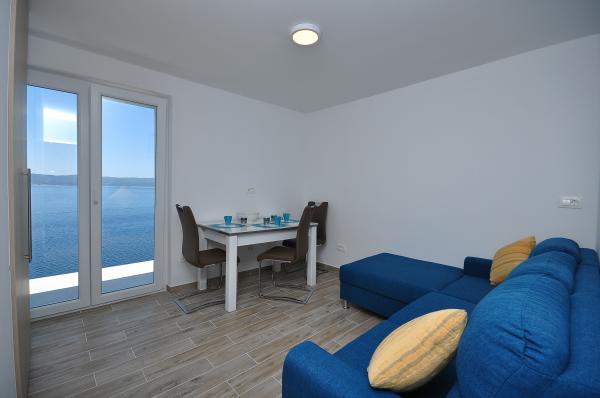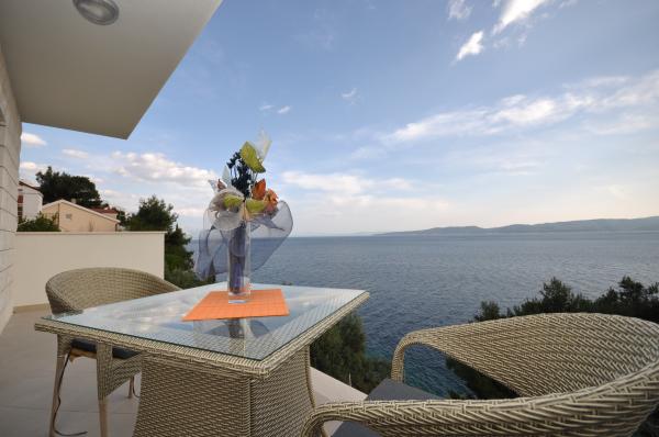 Modern és kényelmes apartmanok első sorban a tenger felé (40m). Minden apartmanhoz erkély tartozik, kilátással a tengerre és Brac-szigetre. A ház alatt van egy saját bejárat a tengerhez (beton tengerpart), és egy saját rész a napozáshoz és az árnyékhoz. Az apartmanok légkondicionálóval, műholdas TV-vel, wifi-vel felszereltek. Van egy biztonságos parkolóhelyünk a ház előtt. Az udvaron közös zuhanyzó és grill található. A város központja 400m-re van (üzlet / vendéglők). A legközelebbi kavicsos strand kb. 200m-re, a legnagyobb strand pedig 400m-re található. A környék csendes. Omis és Makarska városai nagyon közel vannak (18 km), csakúgy, mint Brac és Hvar szigetei. Élvezheti a tevékenységeket, mint például búvárkodást, hajókölcsönzést és vitorlázást. Ideális hely a pihenésre és a kikapcsolódásra.
