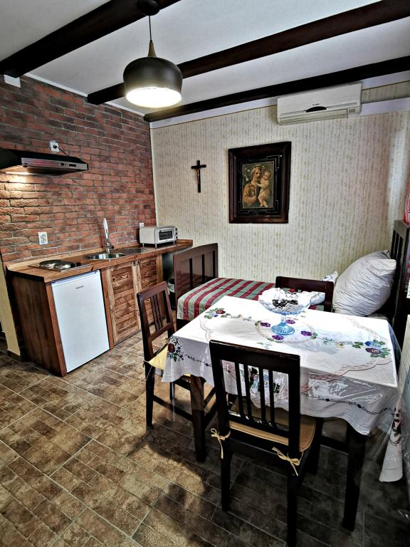 Az Apartment Slavonska kuća Pleternica városának központjában található, és őshonos stílusban berendezett szállást kínál, 2 egyágyas és 1 kétágyas szobával, egy tágas, közös lakó- és társasági területtel, valamint egy nagy terasszal. Teljesen felszerelt, minden szükséges felszereléssel a kényelmes tartózkodáshoz - TV, légkondicionálás, wifi, ingyenes parkolás, terasz, teljesen felszerelt konyha.
