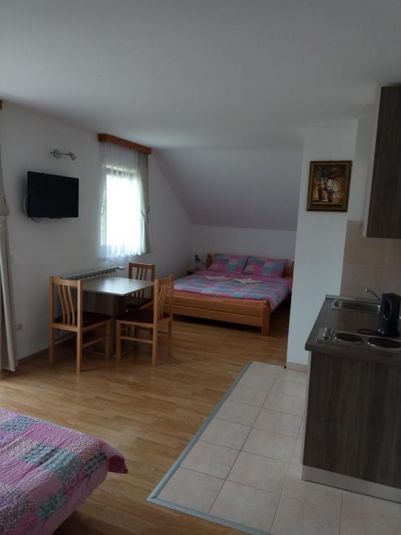 Az Apartments Dale épülete Smoljanac csendes falujában található, mindössze 7 km-re a Plitvicei-tavaktól. A stúdióapartmanok 1 franciaággyal és 1 kanapéval felszerelt szobát tartalmaznak, és alkalmasak kétgyermekes családok számára, zuhanyzós fürdőszobával, konyhával és műholdas TV-vel. Ingyenes internet-hozzáférés áll rendelkezésre az egész létesítményben. A parkolás benne van az árban és a ház előtt található. Ezekben az apartmanokban egyedülálló légkört és egy olyan helyet fedezhet fel, ahol csodálatosan töltheti idejét, élvezheti a természetet és pihenhet. Télen alkalmas szánkózásra, nyáron pedig úszásra a Korana folyóban. A Plitvička Jezera Nemzeti Park mellett Slunj közelében található a Barac-barlang és a Rastoka is.