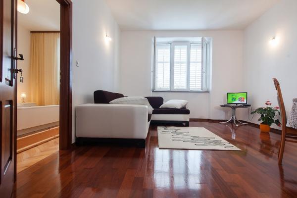 Teljesen felszerelt, modern lakás, amely teljesen felújított, 2012-ben. Nem található egy kő villa közepén Podgora. A villa található, a tenger és a gyönyörű kavicsos strand található a lépést a villa (távolság 10 m). A lakás gyönyörű kilátás nyílik a tengerre és a két központi Brac és Hvar. Apartman neve - Orange csak áthalad a környezetébe, villa, nevezetesen kertben áll, évszázados fák narancs, citrom, gránátalma, naspolya és más meditranskog növények. A kertben található és biztonságos parkolási ami benne van az árban. Felhívjuk figyelmét, hogy ez a lépés lakosztályok mindegyike sadržaiji sport, kulturális és szórakoztató teszik a nyaralást még élvezetesebbé.