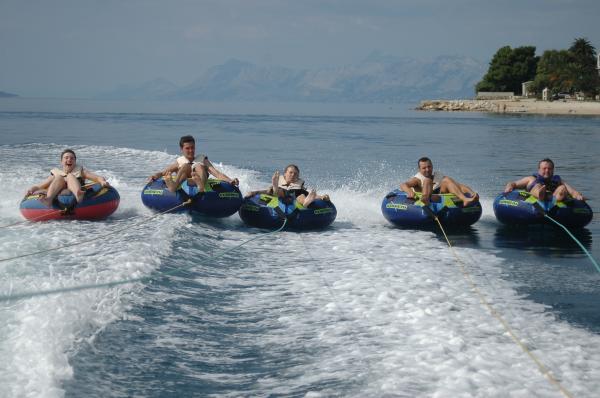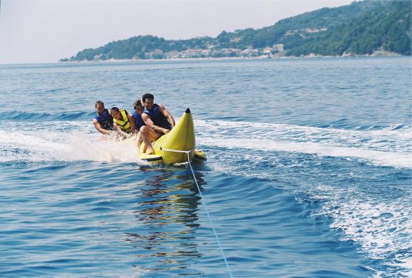 Lakossági adót az az ár tartalmazza.Kínálunk lehetőséget a bérleti díjak egy hajó Quick Silver 630 motorral 150 LE Suzuki, 5m csónak motor 5HP, vízibicikli, jet-ski, siklóernyőzés, banán túrák, csövek, nagy éghető, aqua park. A vendégek, az ár a vízi sportok 20% -kal kisebb.