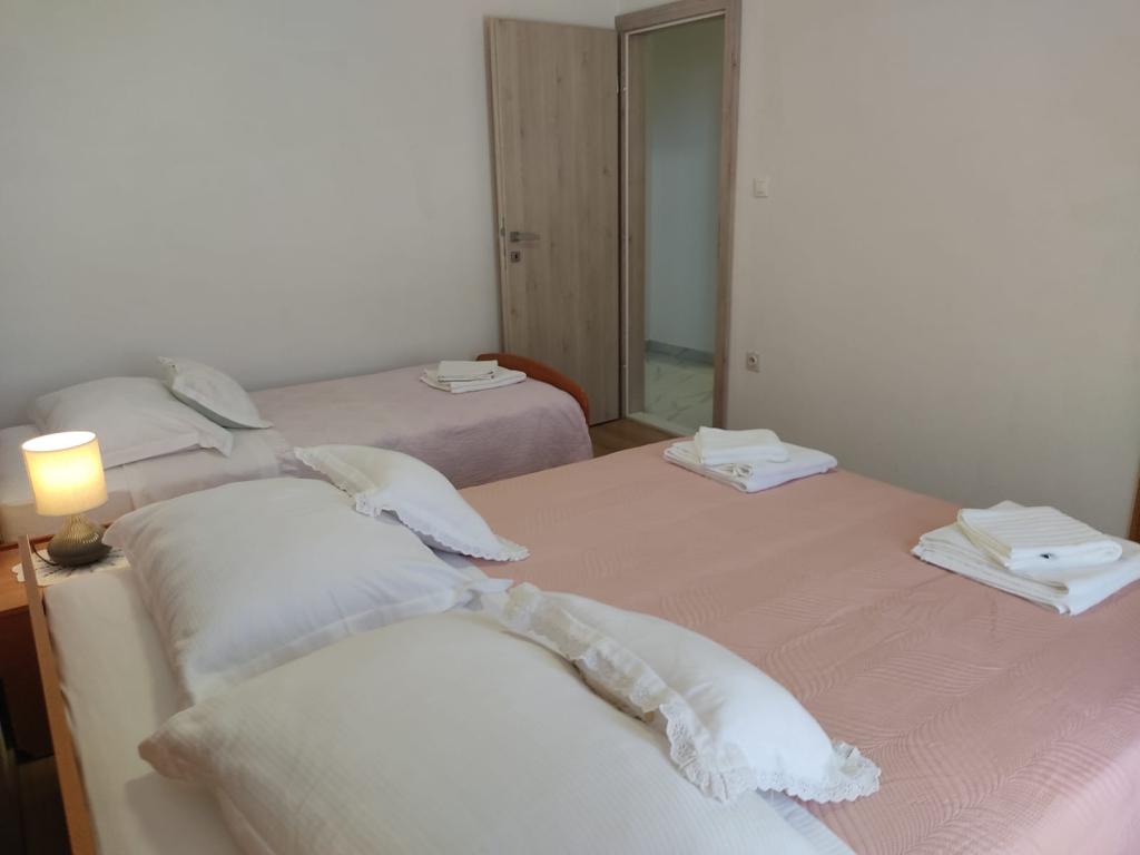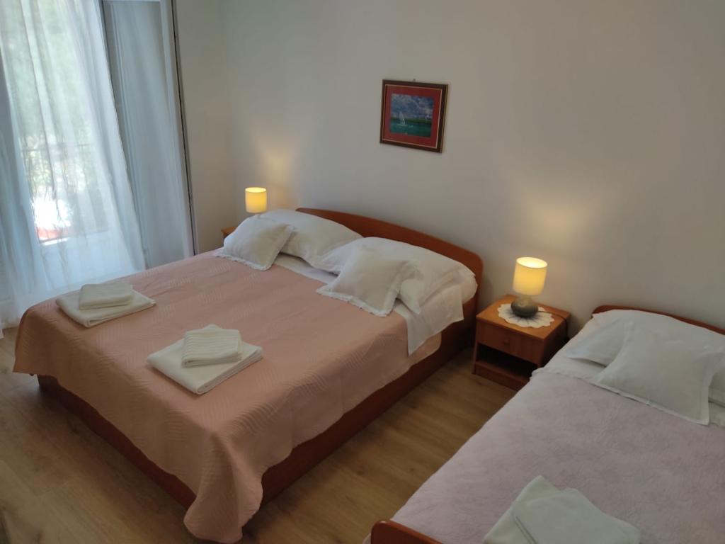 Eddig a legjobb szállás Horvátországban. (És ez a mi 10-szer) Apartman 8 + 1 - nagyon tágas, tiszta, légkondicionált (3xAC) kapható 2 konyha, 2 hűtőszekrény (mi oly sok ember nagyon hasznos) felszerelt konyha, amire szüksége van, 2 fürdőszoba (zuhanyzó, kád), és ami a legfontosabb, fantasztikus teraszáról lenyűgöző kilátás nyílik a tengerre, a hegyekre, város. Bár a Google térképek nem mutatják az utat a partra, akkor ne aggódj ... :) igaz festői út között az olajfák és a szomszédos házak (süllyedés elvittek 7 perc). Nagyon tágas szoba nagy ággyal és szekrények dolgokat, figyelmen kívül hagyja a két legnagyobb terasz, erkélyek két irányban a hegyek. A legfontosabb dolog - nagy tulajdonosok, nagyon barátságos és segítőkész. Már én még nem találkoztam olyan vendégszerető és segítőkész emberek, akik készek minden olyan javaslatot, kérést, érdeklődés. Javasolt 100%