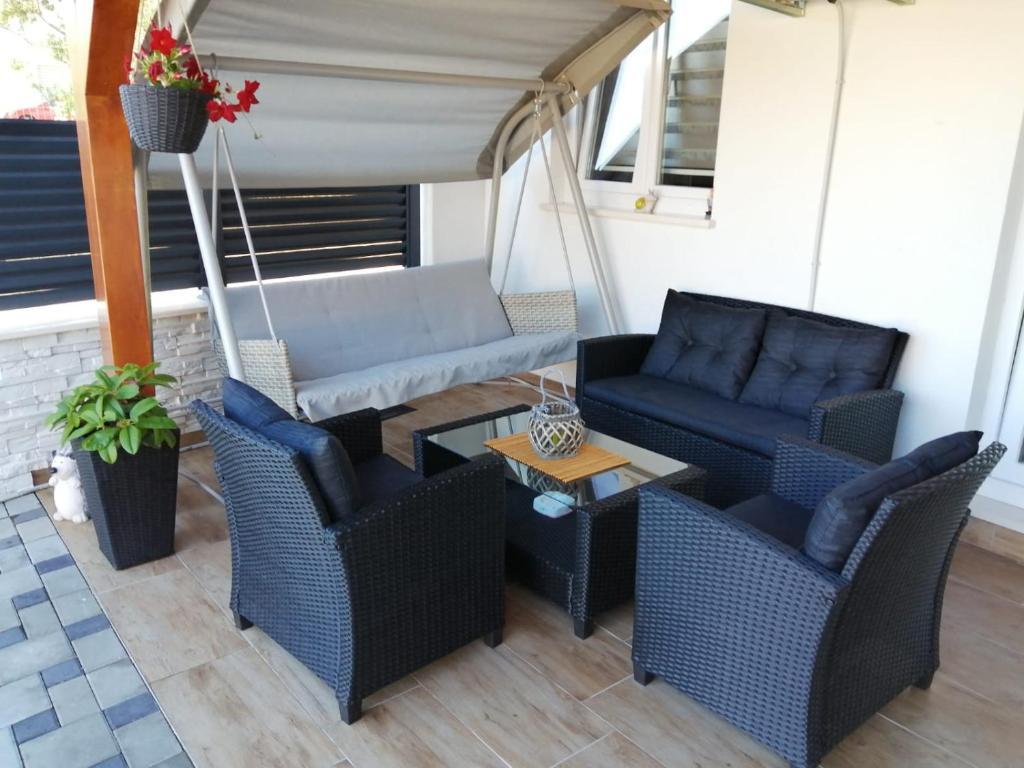 Az Apartment KARLA épülete Strožanec-Podstranában található, körülbelül 8 km-re Splittől. Házunk csendes környéken található, mindössze 800 m-re a homokos strandtól. A strand mentén számos étterem, bár, pizzéria és kávézó található, amelyek tipikus dalmát ételeket és italokat kínálnak megfizethető áron. A nemrégiben felújított apartman légkondicionálóval, TV-vel, ingyenes Wi-Fi-vel és őrzött parkolóhellyel rendelkezik. A konyha és a fürdőszoba minden szükséges felszereléssel felszerelt (edények, hűtőszekrény, mosogatógép, törölköző, wc papír, mosógép...). A kertben grillező is található, a reggeli kávét pedig a virágokkal körülvett gyönyörű teraszon fogyaszthatja el. Kedves és vendégszerető család vagyunk, akik békés és kellemes nyaralást kívánnak Önnek biztosítani gyönyörű apartmanunkban. Várjuk, hogy új emberekkel találkozhassunk, és ha kérdése van, szívesen segítünk. :)