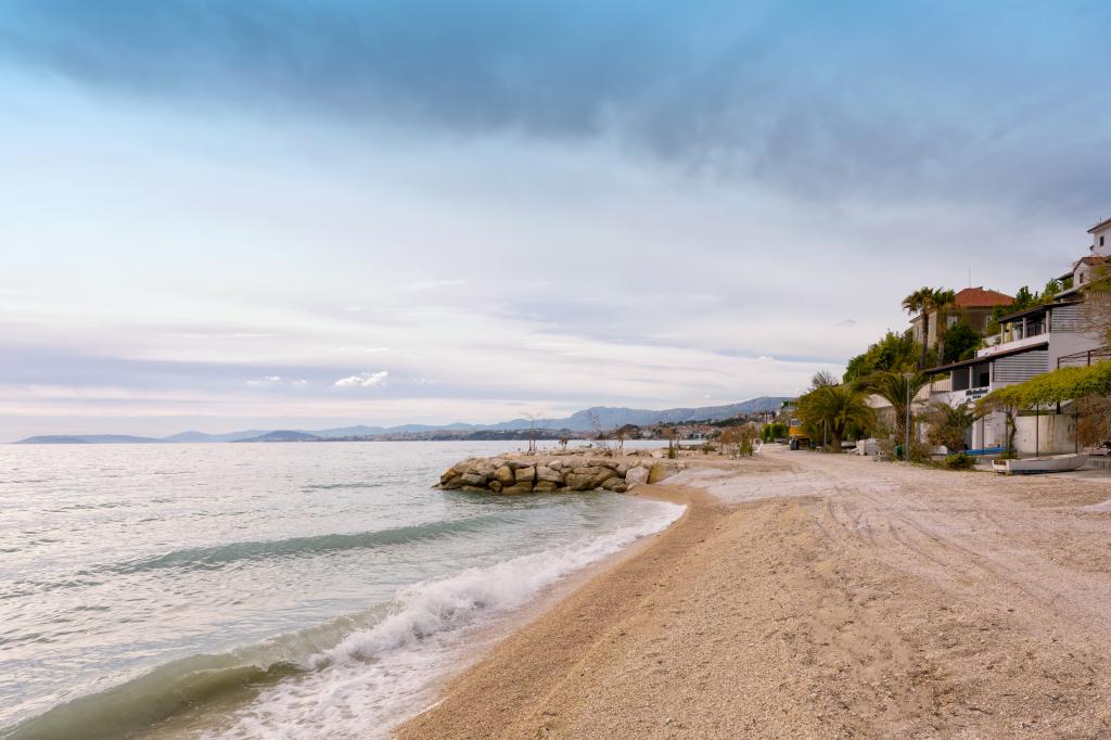 Tengerparti apartmanok, gyönyörű kilátással a naplementére és a tengerparton nyúló strandokkal nyári sétákra. Az apartman 5 méterre fekszik a tengertől és biztonságos parkolót kínál. Az ingatlan 20 percre található Split központjától. Mentők, gyógyszertárak, gyermekorvosok, fogászat és tűzoltó állomás található a közelben. A turisztikai információ 3 km-re található.