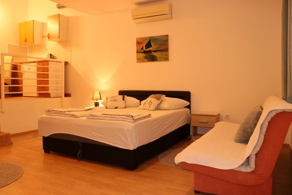 A házigazdák csodálatos fiatalok. A szállás szó szerint a tengerparton van, kimegy a szabadba, és máris a strandon vagy, ingyenes napozóágyakkal és napernyőkkel. Alapvetően az Apartmanija hirdetése hiteles, minden információ helyes, és nem fogsz csalódni, ha odaérsz. Gratulálok, minden kiváló.