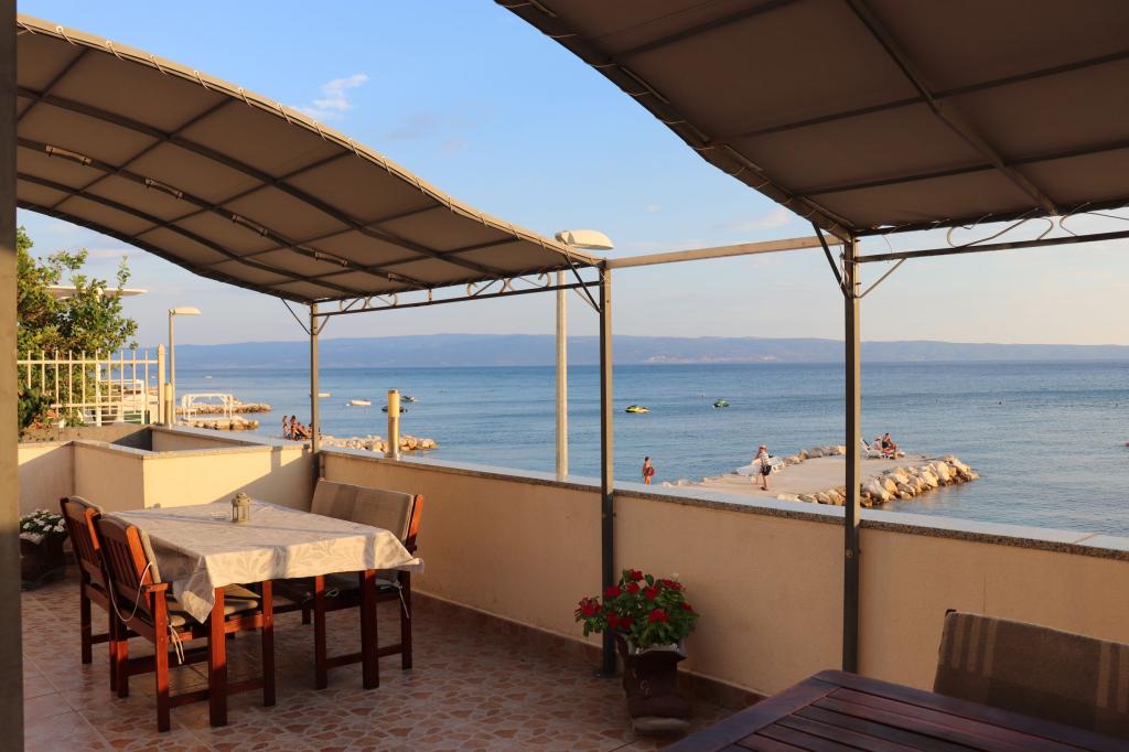 Teljesen felszerelt apartmanok Podstranában, az első sorban a tenger felé. Az apartmanok 50 méterre találhatók az üzletektől és éttermektől. Biztonságos hely a tengerparton napozóágyakkal és napernyőkkel az árban.