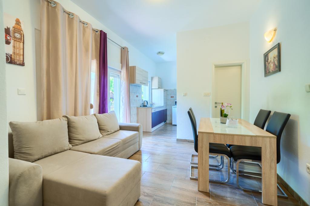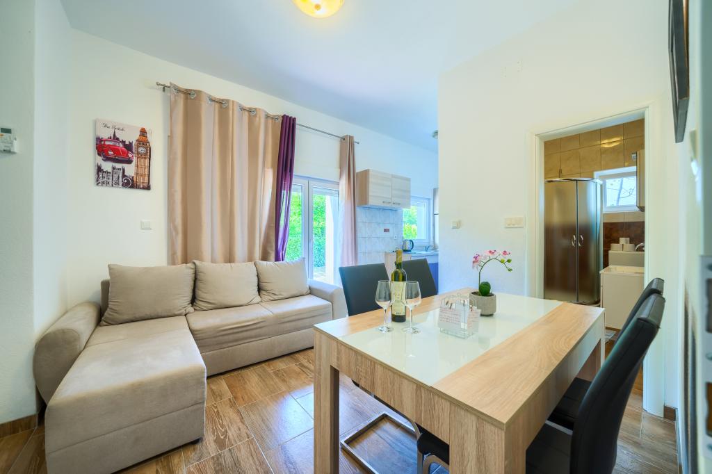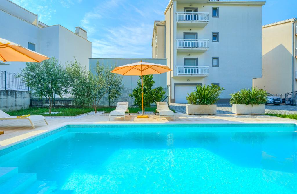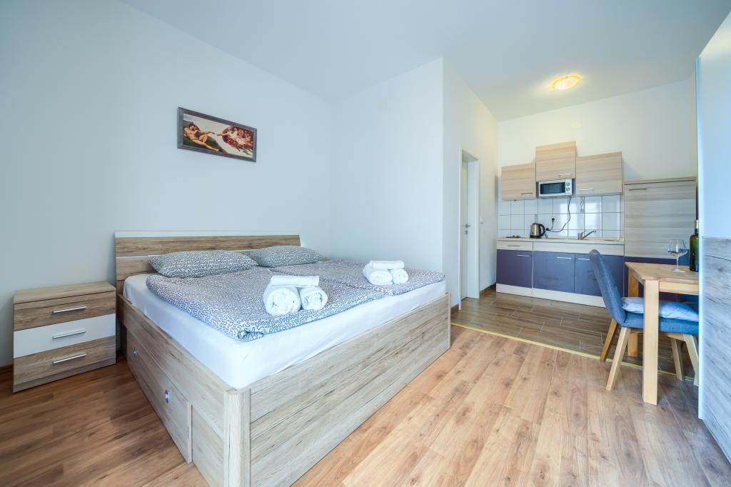 Új és modern felszereltségű apartmanok egy csendes környéken, 200 méterre a tengertől. A szálláshely 5 perces sétára található 3 kavicsos strandtól, kávézóktól, üzletektől, éttermektől, gyógyszertáraknak, orvosoknak és gyógyszertáraknak. Minden egység légkondicionálóval, TV-vel, étkezővel, fürdőszobával és terasszal felszerelt. Az új, 8x4 méteres úszómedence kizárólag az apartmanok vendégei számára áll rendelkezésre.