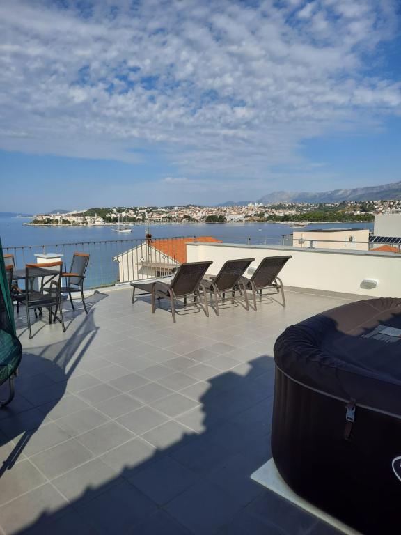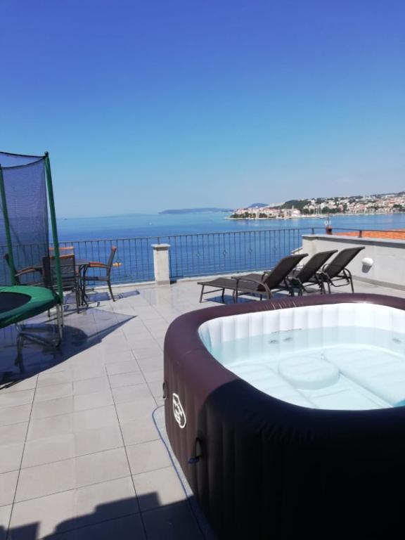 Luxus, nagy tiszta apartman gyönyörű kilátással a tengerre. A lakás teljesen felszerelt. Minden szobában van légkondicionáló. Két terasszal rendelkezik. Az egyik belső, a másik külső. Minden apartman grillezővel és jakuzzival, kültéri zuhanyzóval, napozóágyakkal rendelkezik. Minden apartman a tengerre néz. A tetőteraszról nyílik a legszebb kilátás. A strand 2 percre van. gyalog. A közelben számos étterem található a strandon. A közvetlen közelben élelmiszerbolt, gyógyszertár, pékség... A házigazdák Iván és Márió kedvesek, gondoskodóak és nagyon vendégszeretőek. Még az ég kékjét is kibírják. Még mindig tartjuk a kapcsolatot. 5 alkalommal voltunk itt. 2018-ban voltunk itt először, és szívesen visszatérünk. Itthon érezzük magunkat