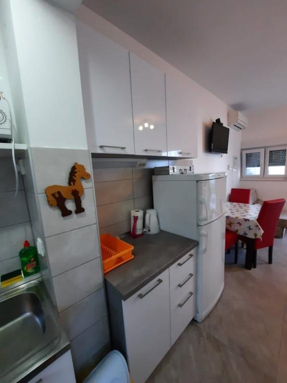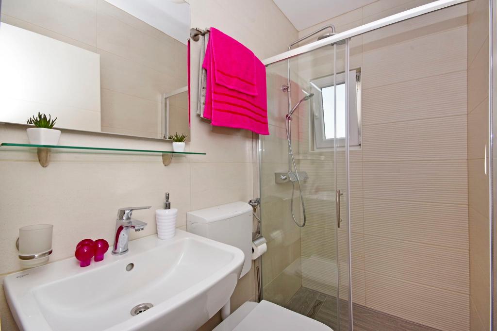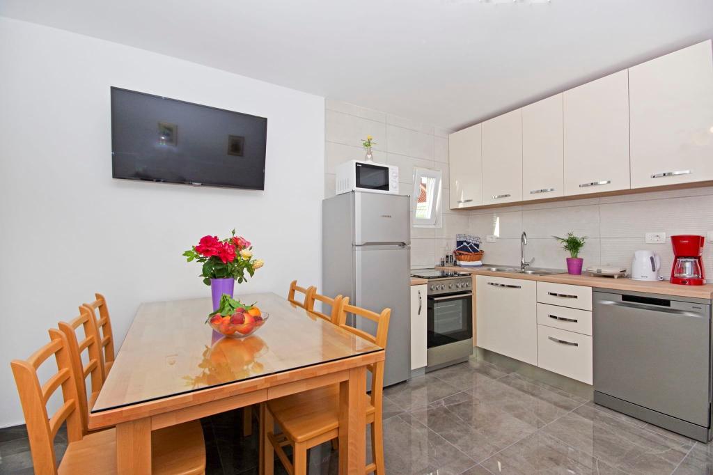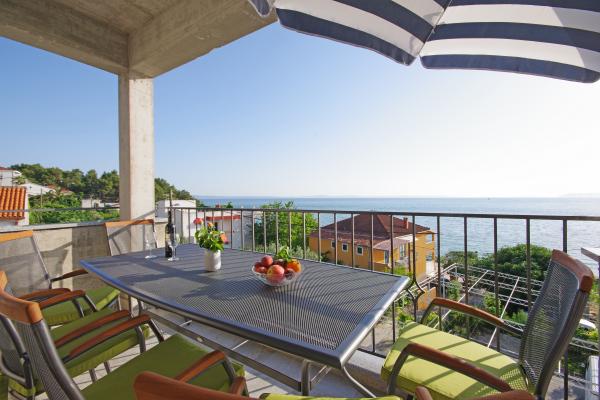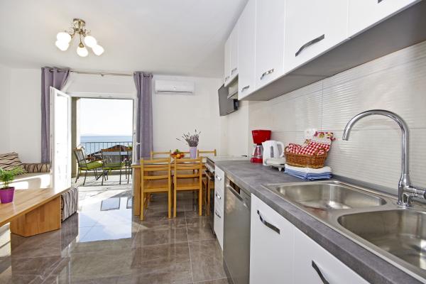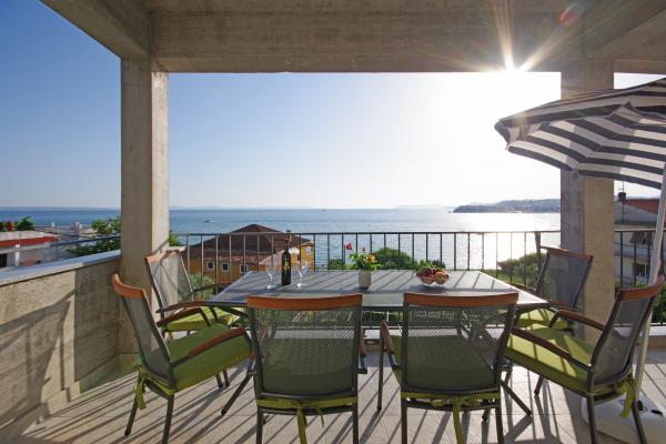 Gyönyörű tiszta apartman, teljesen felszerelt, terasszal, grillezővel és csodálatos kilátással a tengerre. A tetőn - egy másik terasz, még szebb kilátás nyílik a tengerre nyugágyakkal, székekkel, grillezővel és jakuzzival. A tenger csak pár lépésre van a lakástól, gyönyörű türkiz. A strand kavicsos, de fehér homokot és kagylót is találhatunk a tengerben. Otthon Ivanka nagyon kedves, melegszívű, mindig készséges. Kis és nagy családoknak egyaránt ajánlom. Meg vagyunk elégedve, biztosan visszatérünk valamikor.