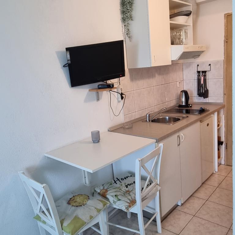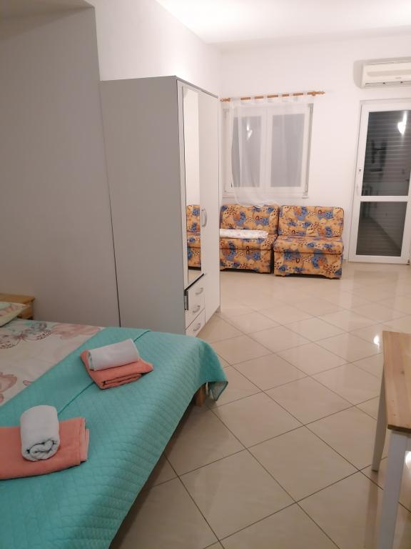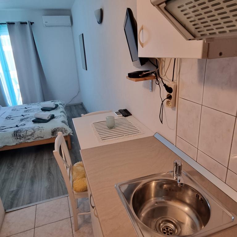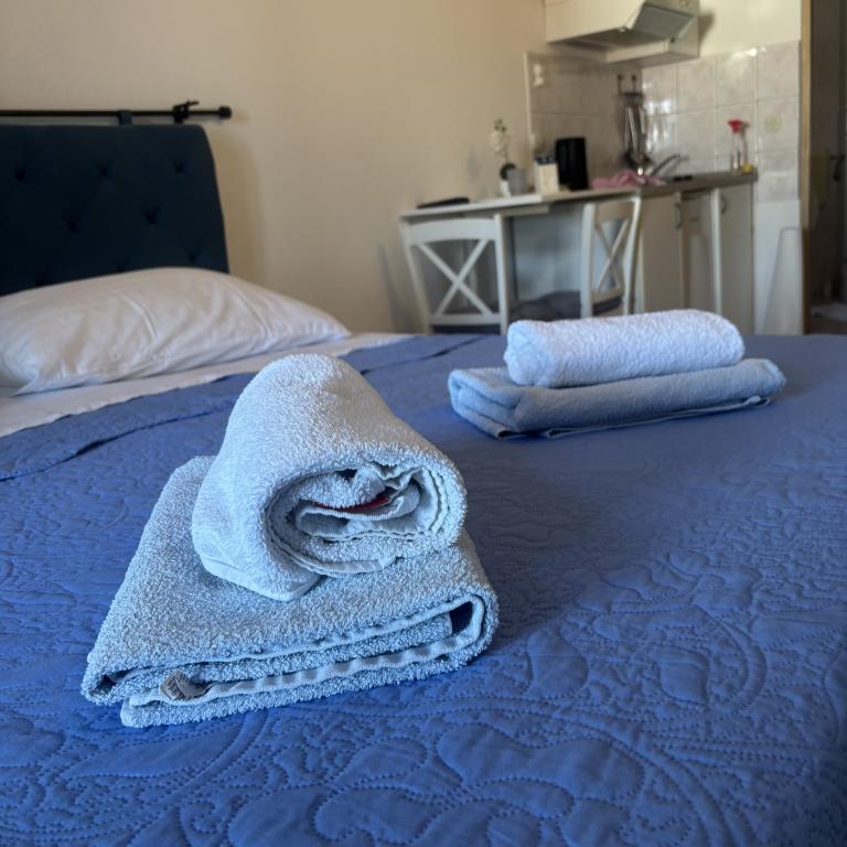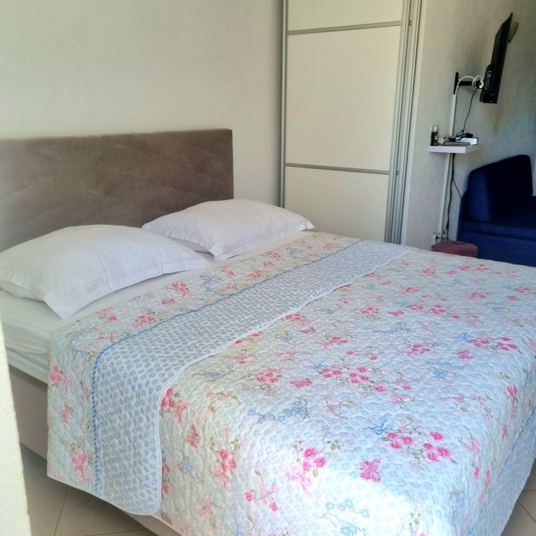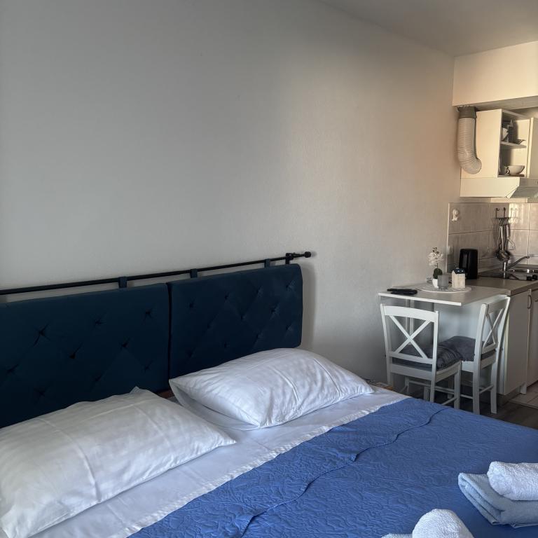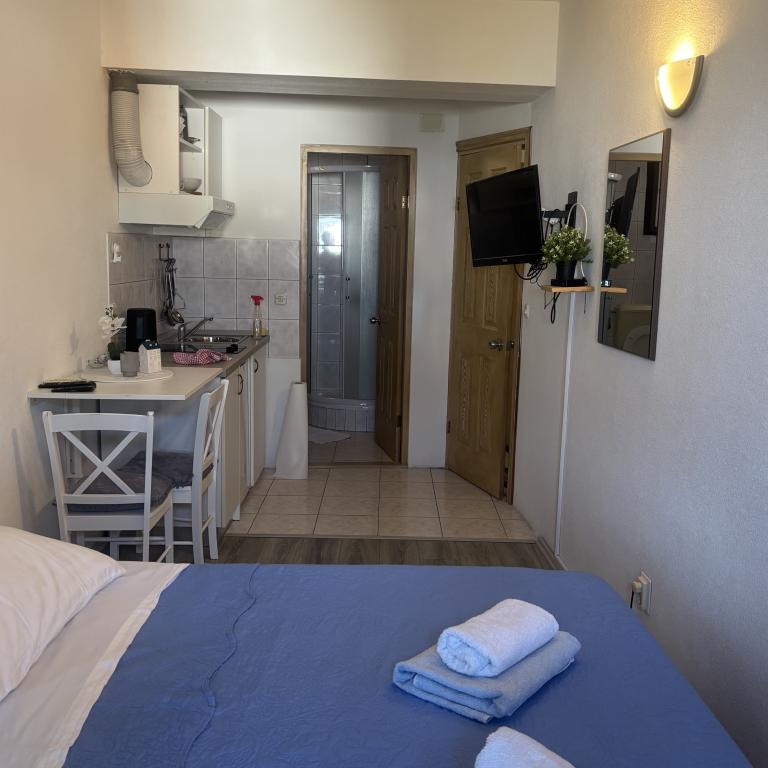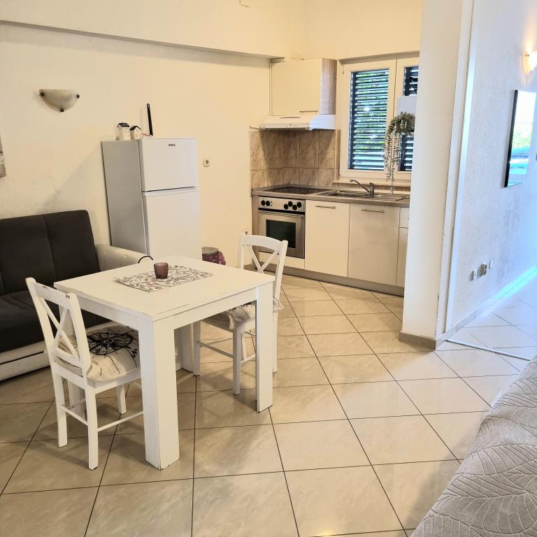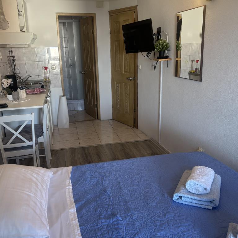 Sara apartmanok tökéletes helyen találhatók, stúdióunkban, ahol maradtunk, csodálatos volt. Van egy strand egy percig, és a strandon van a napozóágy és az esernyő. A tengerpart mellett van egy kávézó, és csak néhány perc sétára a strandtól. A strand szép, a tenger tiszta. A közelben van egy jól felszerelt pékség és pékség is, így lényegében mindent meg kell alapulnia. A létesítményben mindent megtalálsz, ami kézben, vasban, hajban, törölközőben van, és minden rendben és tiszta. Az Ariela hostess egy ragyogó nő, aki örömmel fogadja Önt és minden igénye szerint rendelkezésére áll. Ön alapvetően otthon érez. Valóban, minden dicséret és ajánlás erre a szállásra. Vissza akar térni
