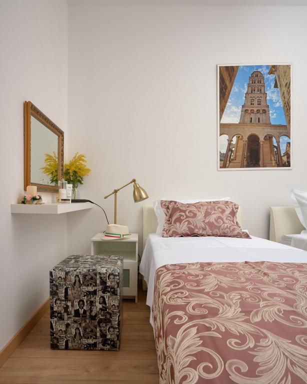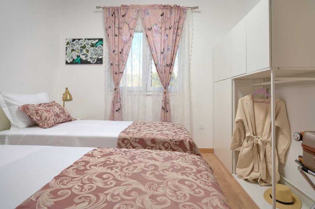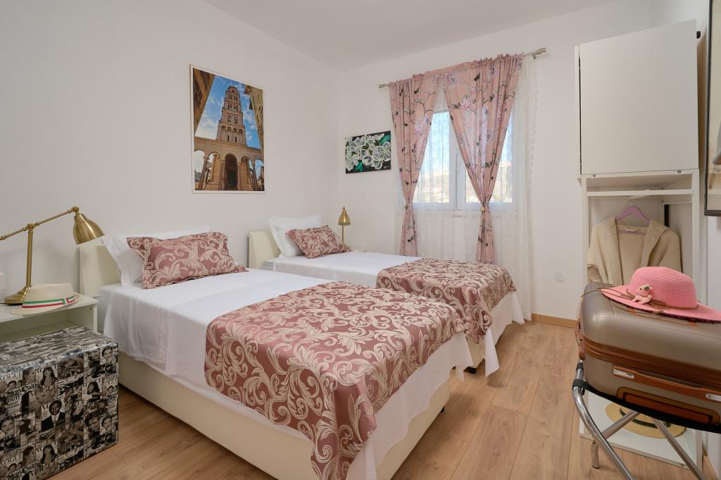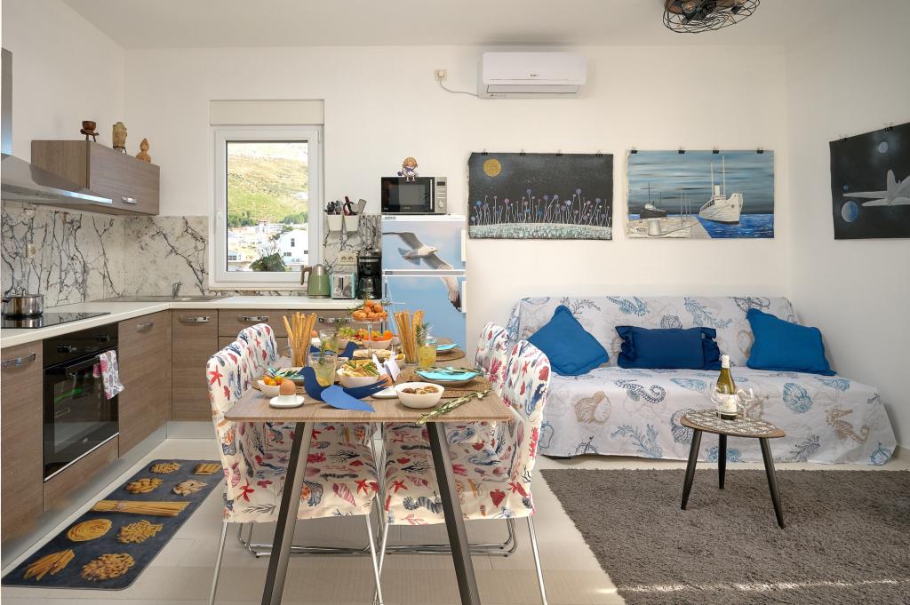 Három újonnan felújított "Sita" apartman található Podstranában, közvetlenül a tenger mellett. Ez a tengerparti oázis, amely érintetlen strandokkal és kristálytiszta tengerrel büszkélkedhet, tökéletes úti cél családok és mindazok számára, akik békés menedéket keresnek egy kisvárosban, a közeli Split izgalmával és kulturális gazdagságával. Minden apartmanunk légiességet és kényelmet sugároz, két hálószobával, modern fürdőszobával, funkcionális konyhával, integrált nappalival és tengerre néző saját erkéllyel rendelkezik. A zavartalan nyaraláshoz minden apartman gondosan megtervezett és modern felszereltséggel rendelkezik: légkondicionáló, WiFi, TV. Parkolási lehetőség az ingatlanon belül található, míg az éttermek, üzletek, kavicsos strandok és sportpályák közelsége számtalan lehetőséget kínál felfedezésre és tevékenységre.