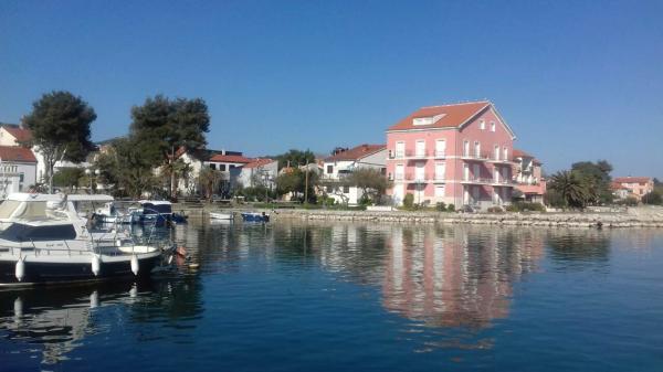 Kedves vendégeink, júniusi különleges árakkal pihenhetnek nyaralóházunkban, amely mindössze 10 méterre található a tengertől. Ott úszhatnak, vagy sétálhatnak a gyönyörű tengerparti sétányon a háztól körülbelül 30 méterre található nagyobb kavicsos strandig. A ház mellett egy gyönyörűen parkosított park található padokkal, ahol ücsöröghetnek és pihenhetnek. A közelben (kb. 20-50 méterre) található egy étterem, pizzéria, egy kis játszótér a gyerekeknek és egy szupermarket. A házban található egy konyha (tűzhely sütővel, vízforraló, mosogatógép, hűtőszekrény) étkezővel, egy nappali kanapéággyal (két személyre elegendő ággyal) és kábeltévével, egy fürdőszoba, valamint egy hálószoba egy 140x200-as ággyal. Egy belső lépcső vezet az első emeletre, ahol két hálószoba (az egyik egy 160x200-as ággyal, a másik két 90x200-as ággyal), egy fürdőszoba mosógéppel és egy terasz ülősarokkal található, ahonnan kilátás nyílik a tengerre, Zadar városára és a közeli szigetekre. A wifi a szálláshely egész területén ingyenes, a parkolás pedig a közös helyiségekben lehetséges.