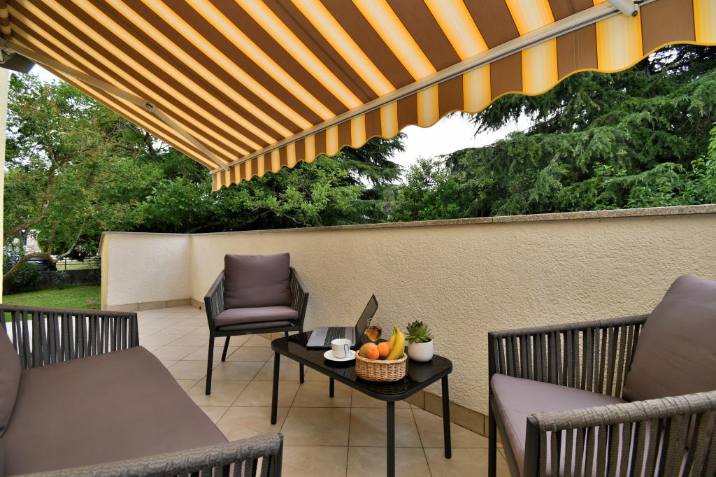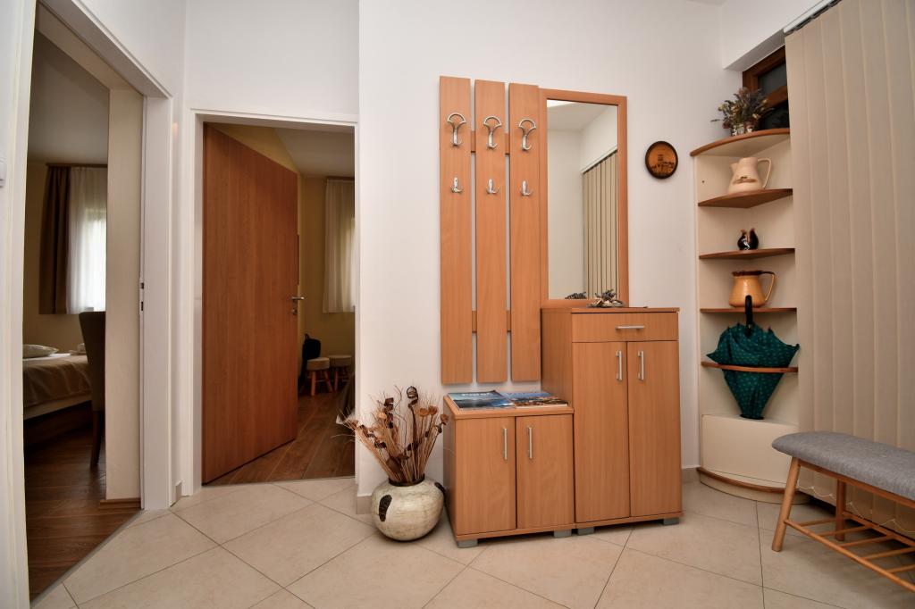 Poreč turisztikai övezetében, a Špadići településen található apartmanunk 2 franciaággyal felszerelt hálószobából, konyhából és étkezőből, előszobából, valamint zuhanyzóval, WC-vel és bidével felszerelt fürdőszobával rendelkezik. Az apartmanban minden megtalálható, ami ahhoz kell, hogy nyaralása igazi nyaralás legyen. Minden ágynemű rendelkezésre áll, valamint teljes evéshez-iváshoz szükséges eszközök, hűtőszekrény, kávéfőző, villanytűzhely, mikrohullámú sütő, TV műholdas vétellel és ezen kívül ingyenes internet hozzáférés korlátlan használattal. A lakás előtt van egy terasz asztallal és székekkel, melyet napellenző véd. A terasz végén a grillező is igénybe vehető, melyet igény szerint beszerezhet. Az Apartment Brijuni mindössze 300 méterre található a kristálytiszta tenger gyönyörűen díszített strandjaitól, ahol üzletek, éttermek, kávézók, pizzériák stb. találhatók. Poreč régi részének központja kb. nem kell autó, mert könnyen el lehet sétálni kb 15 percre, vagy használhatod a kis turistavonatot.