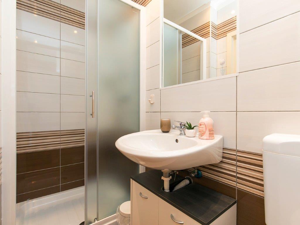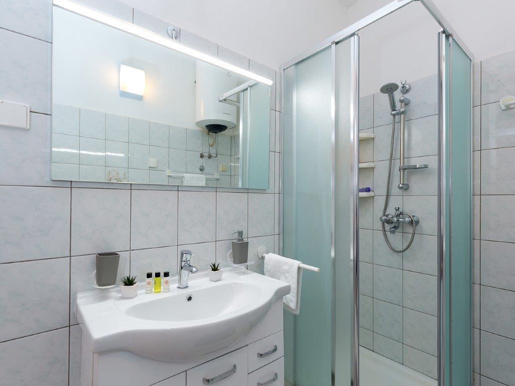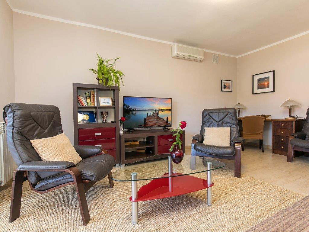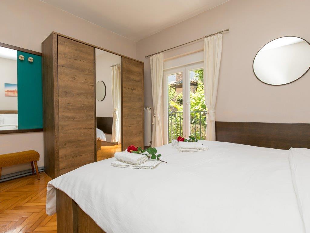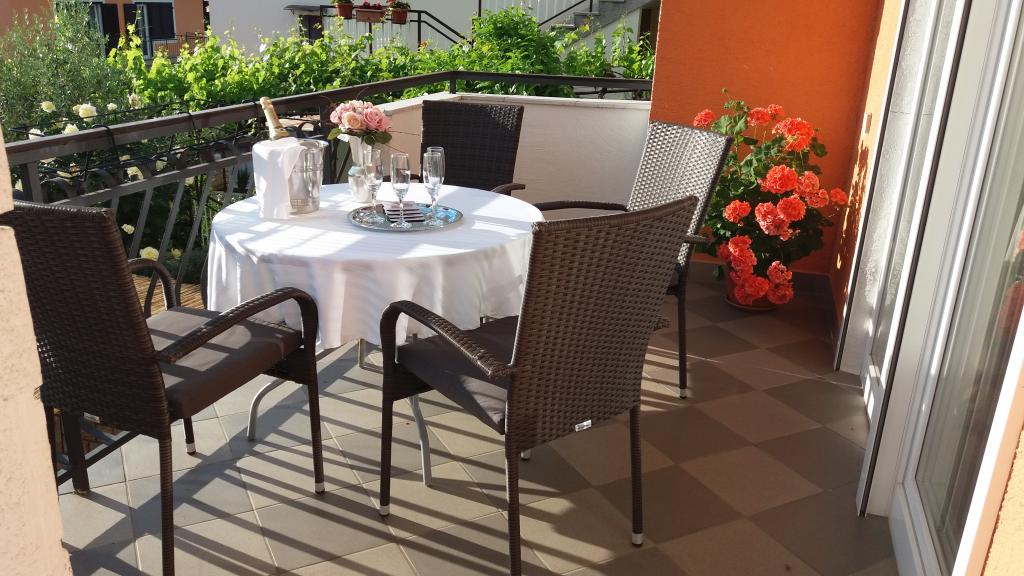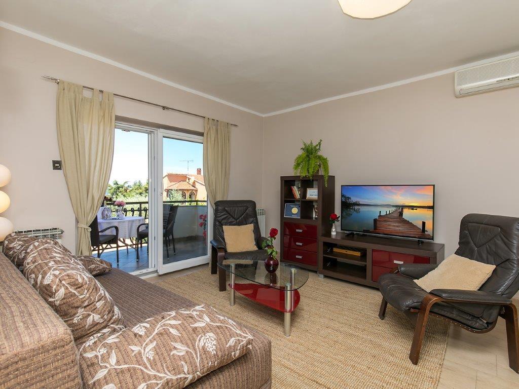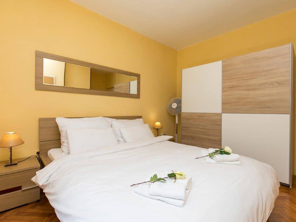 Csendes környéken, a város közvetlen közelében találhatóunk. Az apartmanban 3 hálószoba franciaággyal, konyha, étkező, előszoba és 3 fürdőszoba található zuhanyzóval, WC-vel és bidével. Az apartmanban minden megtalálható, ami ahhoz kell, hogy nyaralása igazi nyaralás legyen. Minden ágynemű rendelkezésre áll, valamint a teljes evéshez-iváshoz szükséges eszközök, hűtőszekrény, kávéfőző, villanytűzhely, mikrohullámú sütő, TV műholdas vétellel, valamint ingyenes internet-hozzáférés korlátlan használattal. Az apartman előtt van egy nagy terasz asztallal, székekkel és nyugágyakkal. A lakás mögött egy igazi paradicsom, az árnyékban van egy nagy asztal és használhatod a grillezőt, míg a gyerekek szabadon játszhatnak a zöld füvön. A ház előtt ingyenes saját parkoló található. A közelben, 50 m-re az apartmantól, van egy nagy szupermarket, éttermek, klinikák, és 400 m-re van a központtól, valamint az első strandtól. Persze nem kell autó, mert 7-8 perc alatt el lehet sétálni.