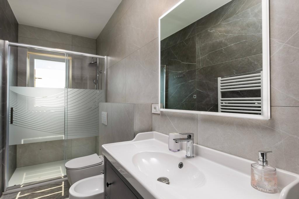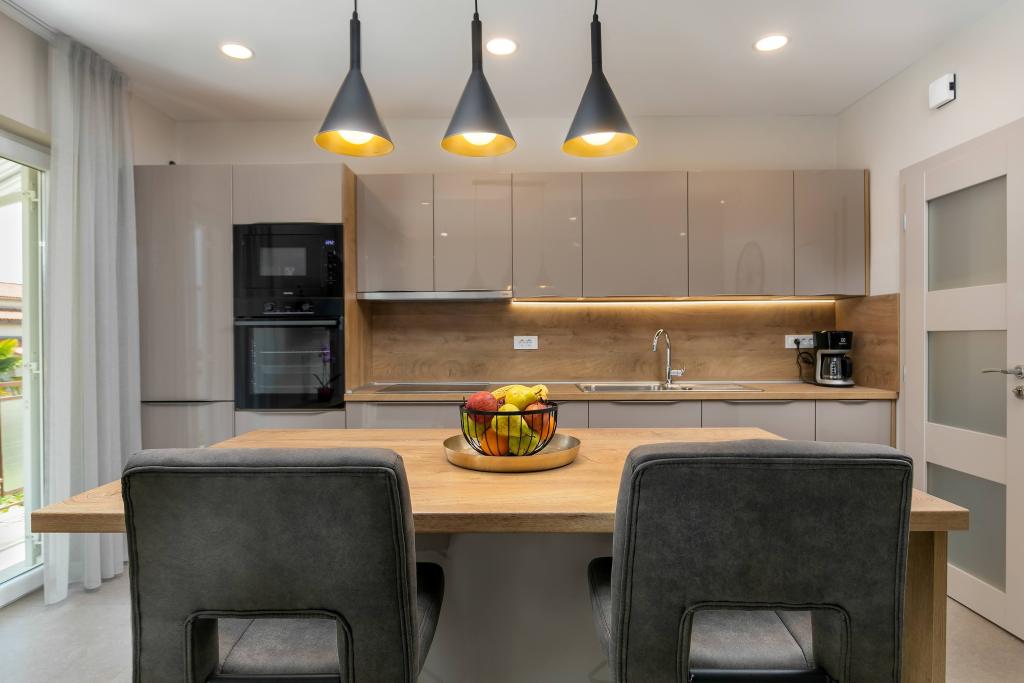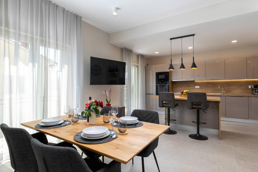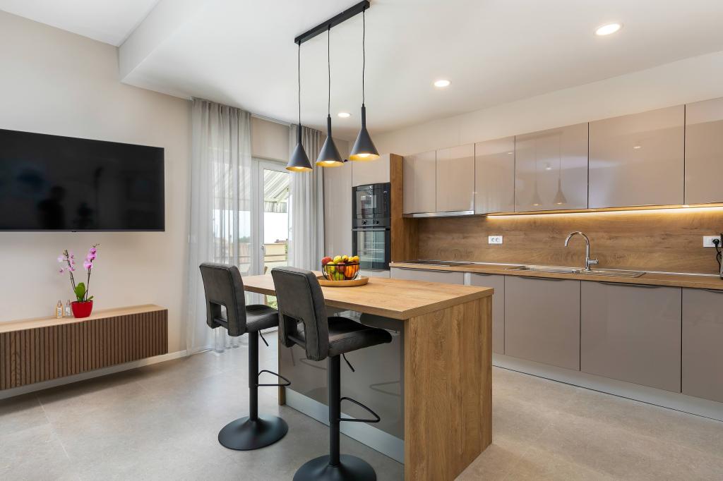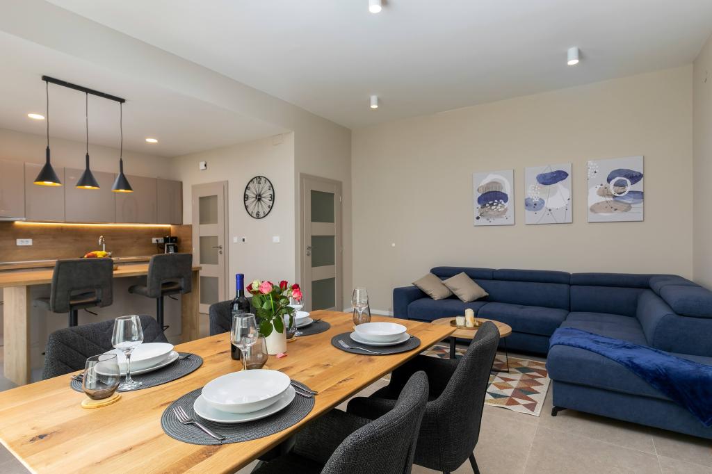 Poreč, Apartman Nona Ana, felújított apartman egy hálószobával, fürdőszobával, tágas nappalival, étkezővel és konyhával, valamint erkéllyel. A konyhában mosogatógép, mikrohullámú sütő, sütő, filteres kávéfőző és eszpresszó kávéfőző, vízforraló és kenyérpirító található. Az apartmanban műholdas TV, Wi-Fi, hajszárító, vasaló a ruha vasalásához és mosógép is található a fürdőszobában. A lakás fűtését és hűtését a nappaliban és a hálószobában található inverteres klíma biztosítja. A lakás az 1. emeleten található. Parkolóhely biztosított az udvarban. A tenger távolsága mindössze 900-1000 m, a piac 500 m, az étterem 600 m, a központ távolsága 2500 m.