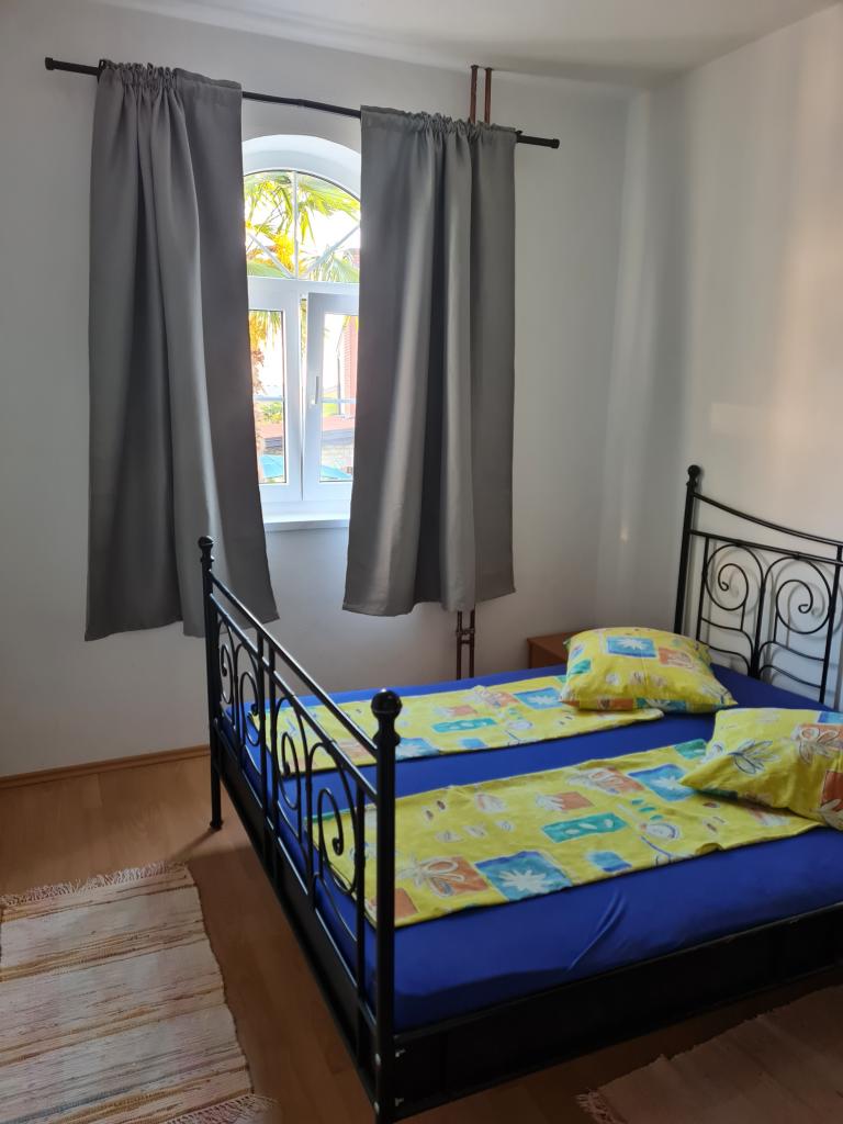 Apartmanok egy magánházban a tenger és a központ közelében. Az apartmanok a földszinten találhatók. Az apartmanok teljesen és modern berendezéssel rendelkeznek. A létesítmény öt perc sétára található a strandtól. Az apartmanhoz egy nagy terasz tartozik grillezővel. Az autók parkolása egy elkerített udvarban található.