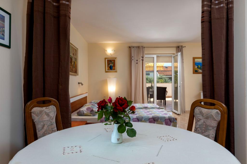 A szépen berendezett apartmanok 2 percnyi autóútra találhatók a tengertől és a várostól. Minden apartmanhoz nagy terasz tartozik, amelyek közül néhány a tengerre néz. Az autók számára a bekerített udvarban lehet parkolni.