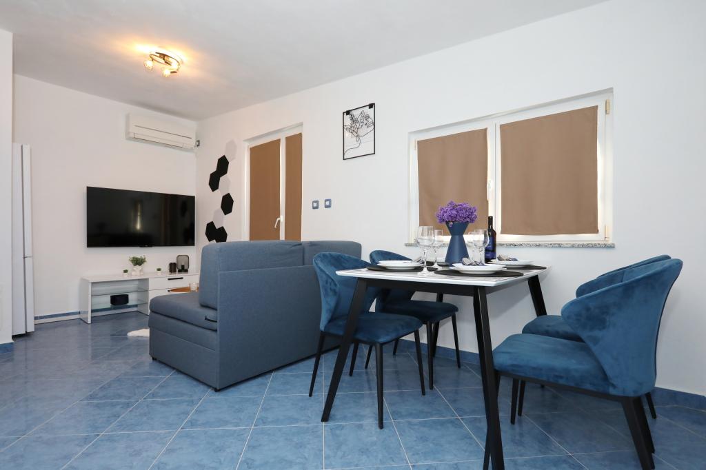 Újonnan, modernül felszerelt, 45 m2-es apartman erkéllyel a városközpontban, biztonságos parkolással a bejárat előtt. Üzletek, pékség, hentesüzlet, piac, gyógyszertár, posta, ATM, étterem mindössze 5 percre, kávézók, egészségügyi központ stb. pedig kb. 5-8 percre találhatók. A legközelebbi kavicsos és betonos strand 5-8 perc, a kavicsos és árnyékos strandok pedig 10-15 perc sétára találhatók. Parkolás a strandon lehetséges. Homokos strand biztonságos parkolással a strandbár közelében, 5 perc autóval. Maga a város gyönyörű kirándulóhelyet kínál, a Čelinkát, és számos Nemzeti Park közelében található: Zrmanja, Paklenica, Krka, Plitvice, Kornati stb.