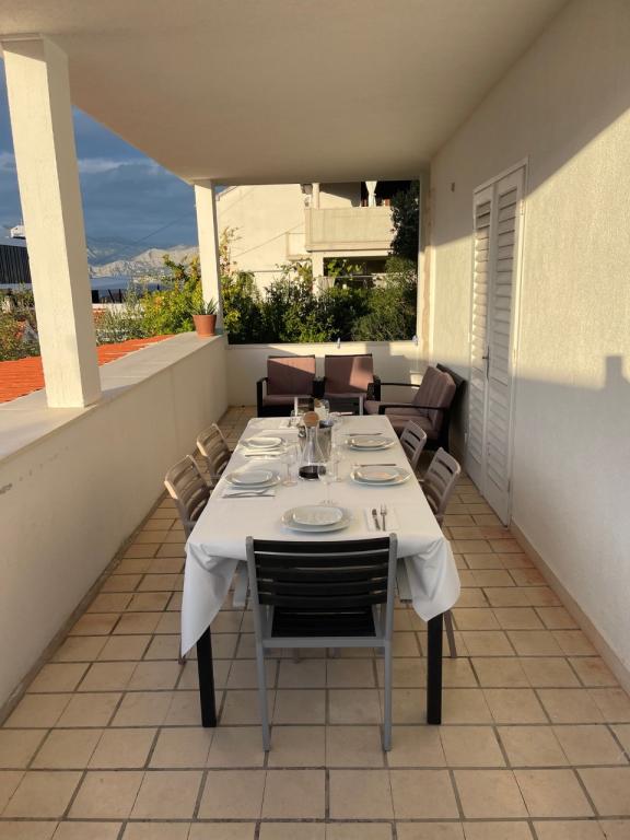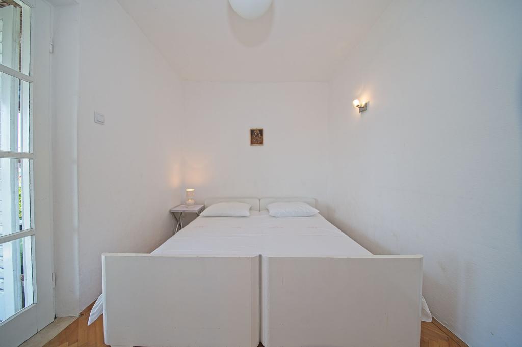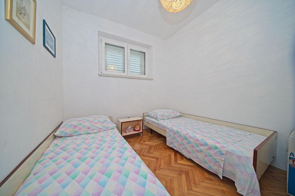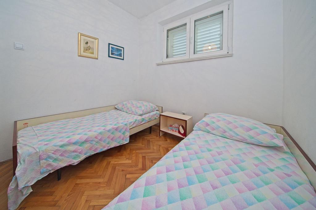 A ház, amelyben az apartmanok találhatók, a város csendes és vonzó részén található. A kerttel és virágokkal körülvett tágas, fedett teraszról gyönyörű kilátás nyílik a tengerre. A ház előtt parkolóhely, az udvarban grillező található. A tenger mindössze 80 m-re, a legközelebbi strand homokos. Az öböl csendes, de 2-3 perc sétára van a városközponttól.