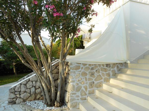 A lakás egy gyönyörűen berendezett ház része, nagy kerttel. Maga a lakás minden berendezése mértékletesen berendezett és alkalmas egy nyaralásra. A nagy terasz mindkét szobából megközelíthető, ahonnan kilátás nyílik a naplementére, és egész délelőtt árnyékban van, így ideális egy kávéhoz a tengerre néző kilátással. A kert egy csodálatos mediterrán tér, tele fenyőfákkal, olajfákkal és szalmavirággal, nyugágyakkal és kerti bútorokkal, és a háztól a strandig húzódik. A telken bőséges parkolási lehetőség biztosított. A fotók nem adják vissza a szállás kényelmét, tisztaságát, világosságát és minden egyéb tulajdonságát. A háziasszony rendkívül kedves.