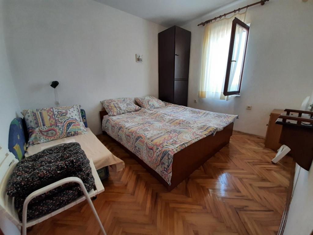 Az apartman egy szép, csendes kis faluban található, mindössze 150 méterre a gyönyörű Dubrovnik/Povljana strandtól (fenyőerdő, kavicsos part, homokos tenger, éttermek, kávézók, fagylalt, különféle gyermekprogramok), valamint 200 méterre a strandtól és a Mali Dubrovnik kempingtől. Az apartman a következőkből áll: - egy szoba egy nagy ággyal (170×200), egy nagy fotellel, egy szekrénnyel, TV-vel - egy külön konyha két tűzhellyel, edényekkel, hűtőszekrénnyel és egy kis asztallal - egy fürdőszoba zuhanyzóval, mosdóval és WC-vel - egy terasz asztallal, székekkel és napernyőkkel - légkondicionáló - ágynemű, törölközők, konyharuhák benne vannak az árban - egy nagy kő grillsütő / barbecue a kertben