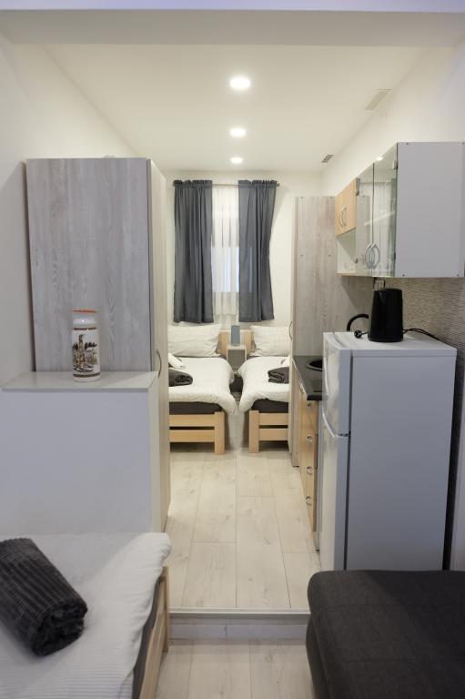 Teljesen és korszerűen felszerelt apartmanok Pozsega városának egy csendes részén, közel a bevásárlóközpont térhez, ahol kávézók, kaszinók és különféle üzletek találhatók. 20 perc sétára a városközponttól. Saját parkoló, nagy terasz.