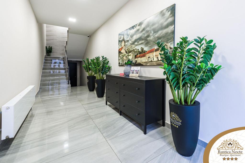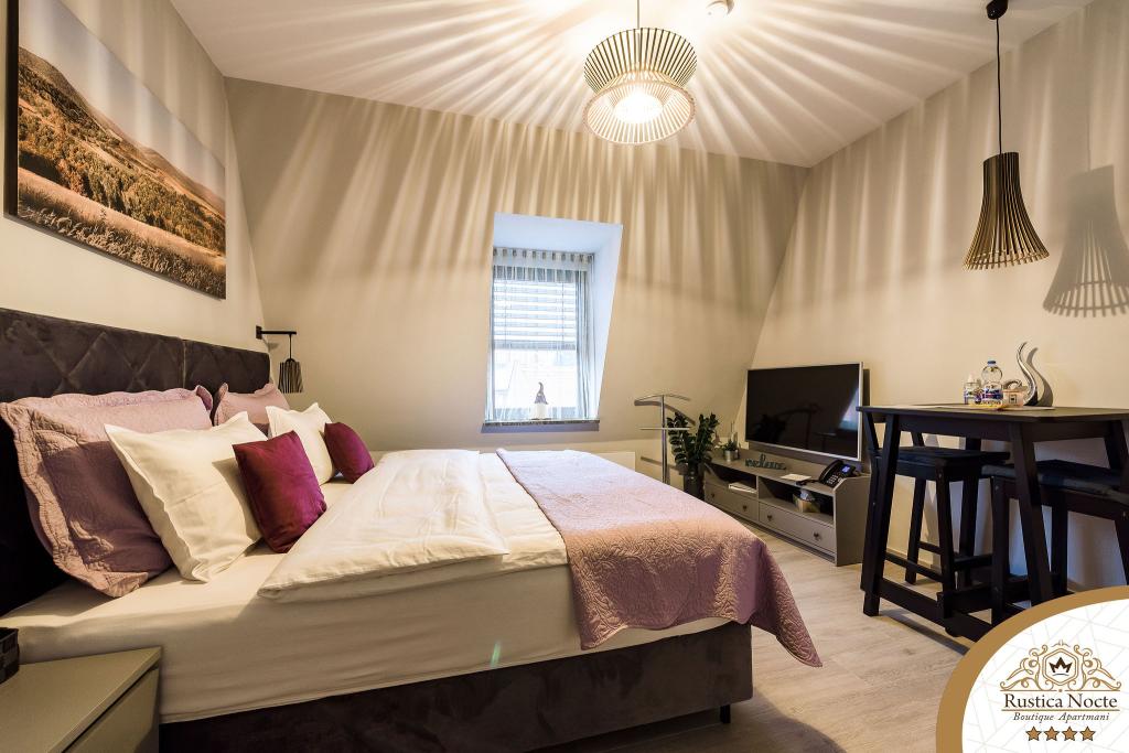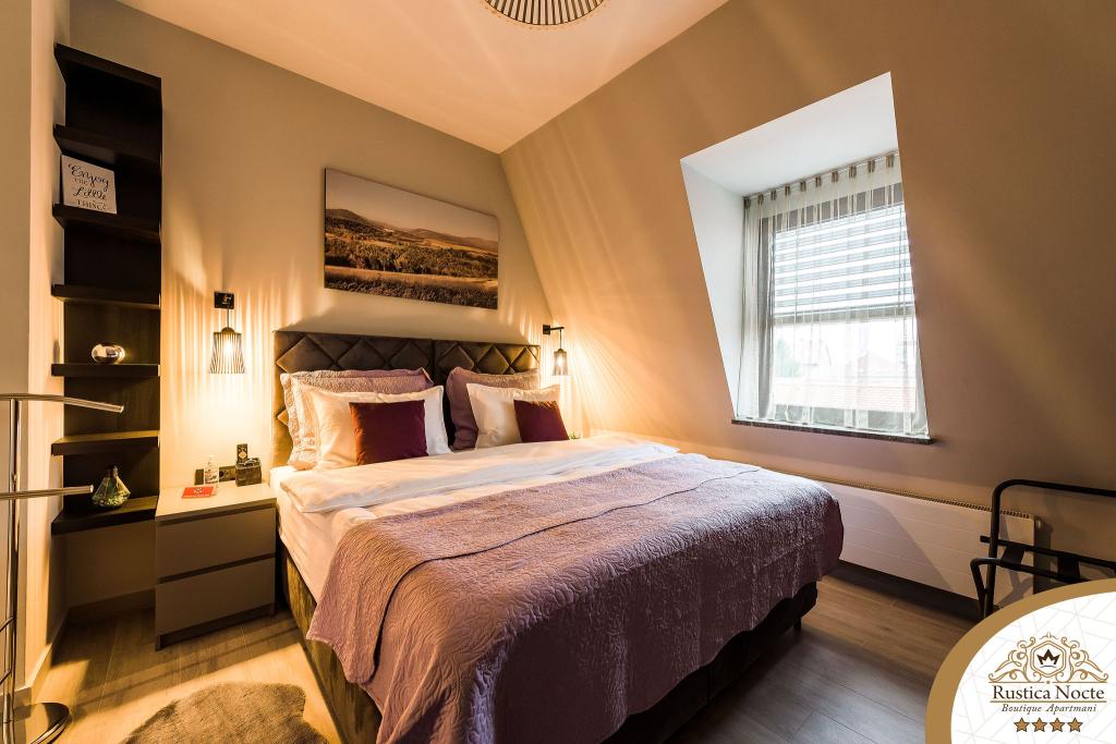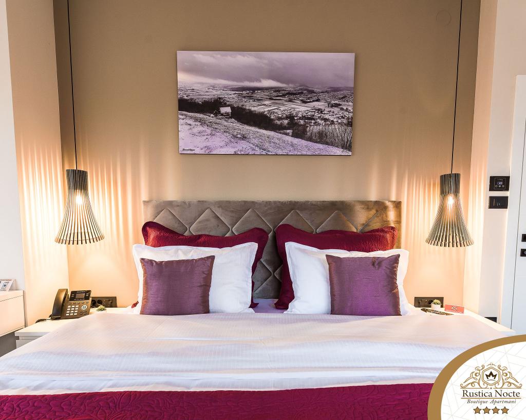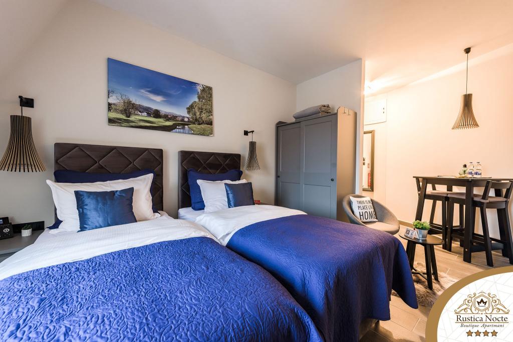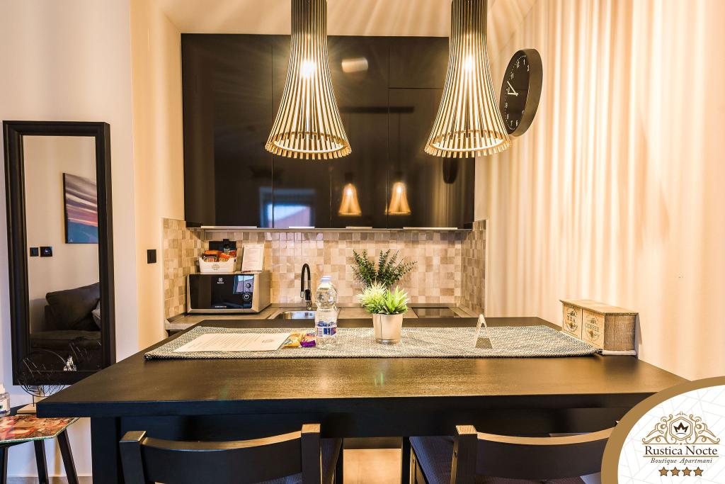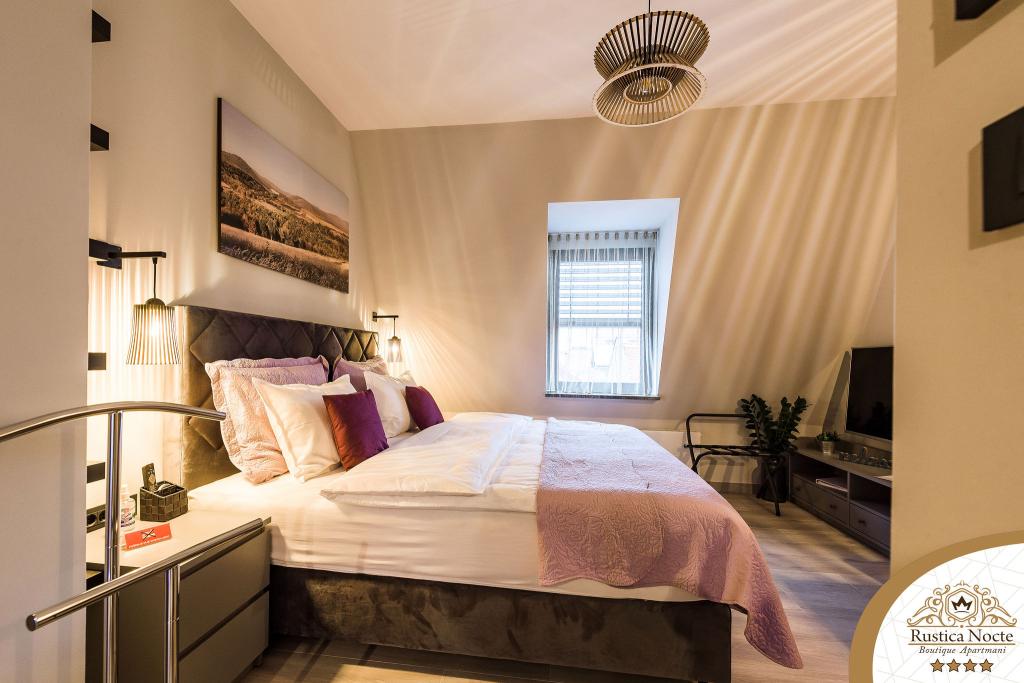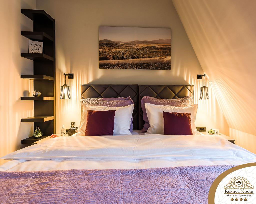 Szlavónia szívében, Pozsega sétálóövezetének elején, a Rustica Nocte Boutique apartmanok tökéletes helyet biztosítanak egy álomnyaraláshoz. Annak érdekében, hogy nyaralása a lehető legkellemesebb legyen, modern apartmanjaink csúcsminőségű felszerelést kínálnak, és külön kiemeljük az egész lakásra kiterjedő intelligens menedzsment rendszert, az ingyenes nagy sebességű Wi-Fi-t, valamint a vezetékes és vezeték nélküli internetet, King-size rugós ágyak, digitális széfek, ultra HD Ambilight televíziók 50 colos Netflix TV-vel, műholdas és helyi műsorok, valamint Ambilight LED világítás az ablakokon, szellőztetett és fűthető fürdőszoba és teljesen felszerelt konyha minden apartmanban. Minden apartmanhoz tartozik egy minibár alkoholmentes és alkoholos italokkal és rágcsálnivalókkal. Az apartmanokhoz egy gyereksarok is tartozik asztalokkal, játékokkal, kifestőkönyvekkel és játszószőnyegekkel. Mindezzel nagyon gondtalanul tervezheti a nyaralását.