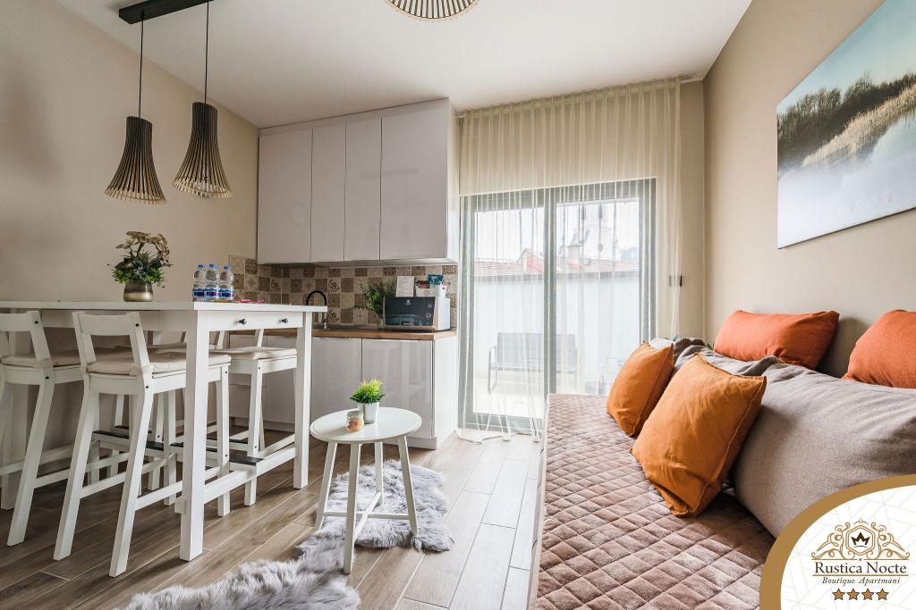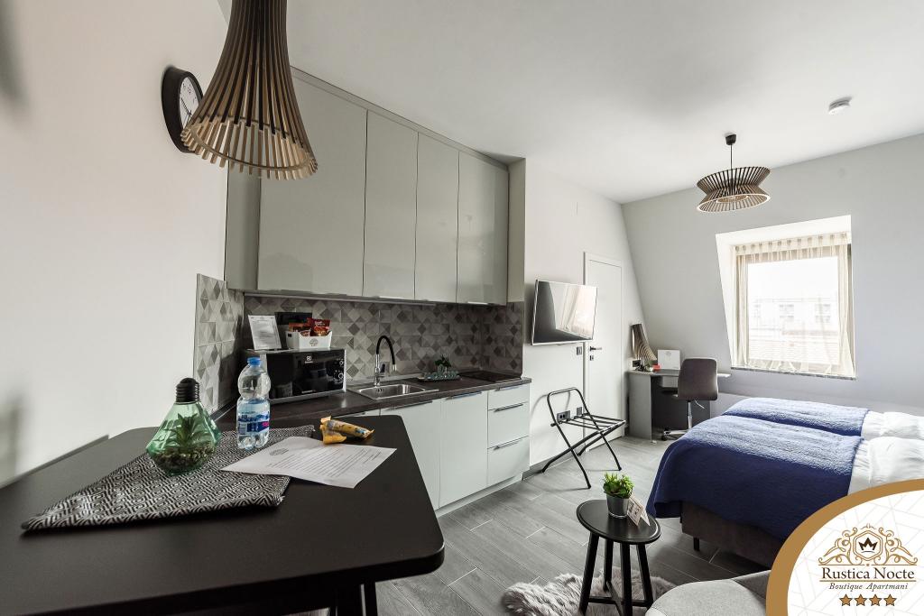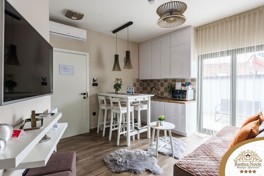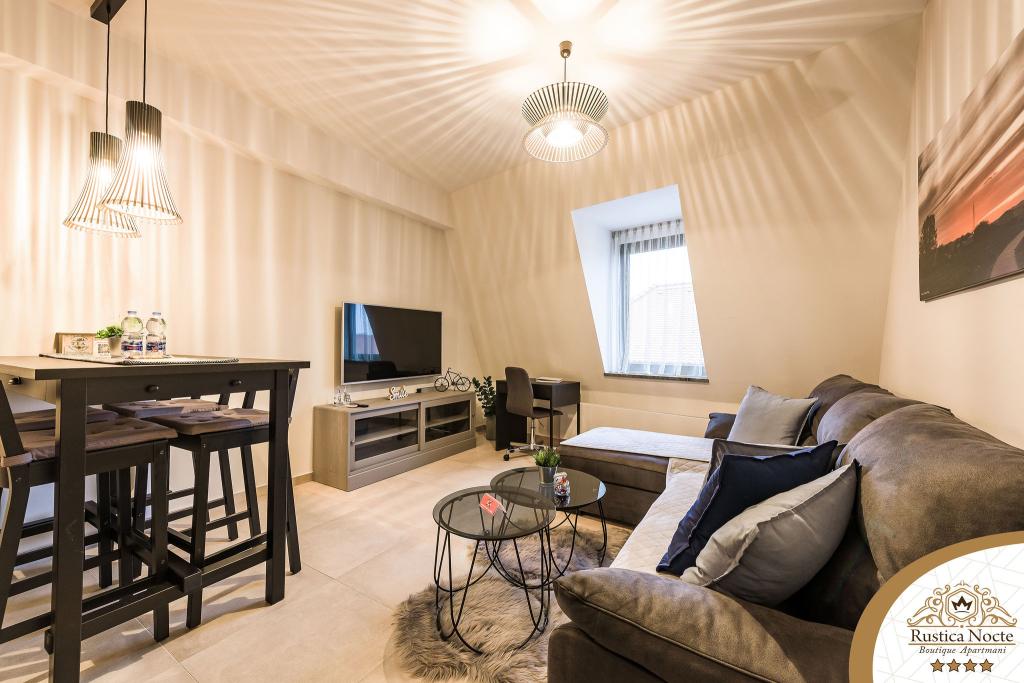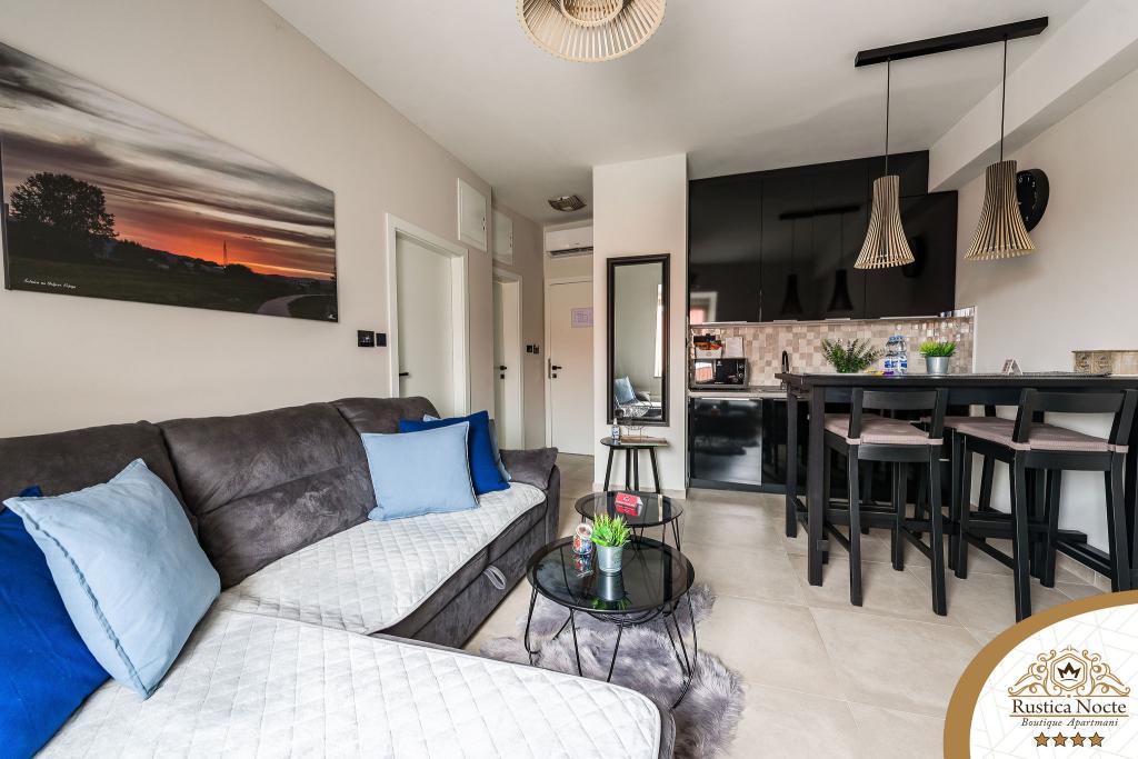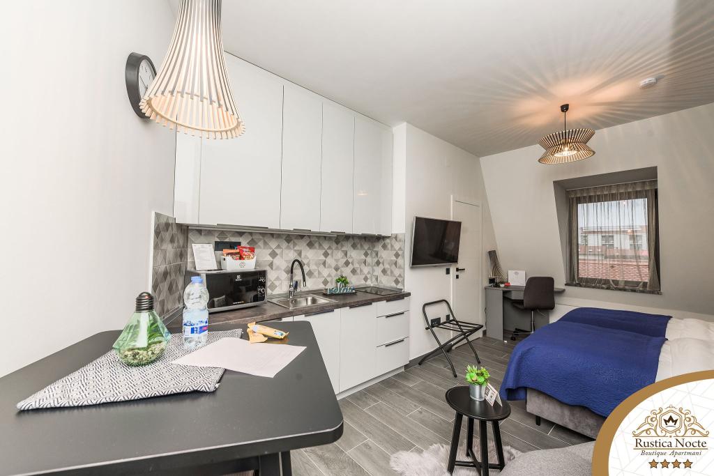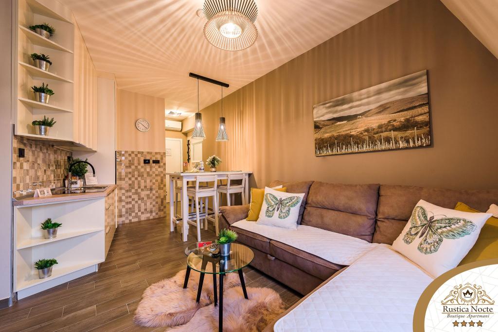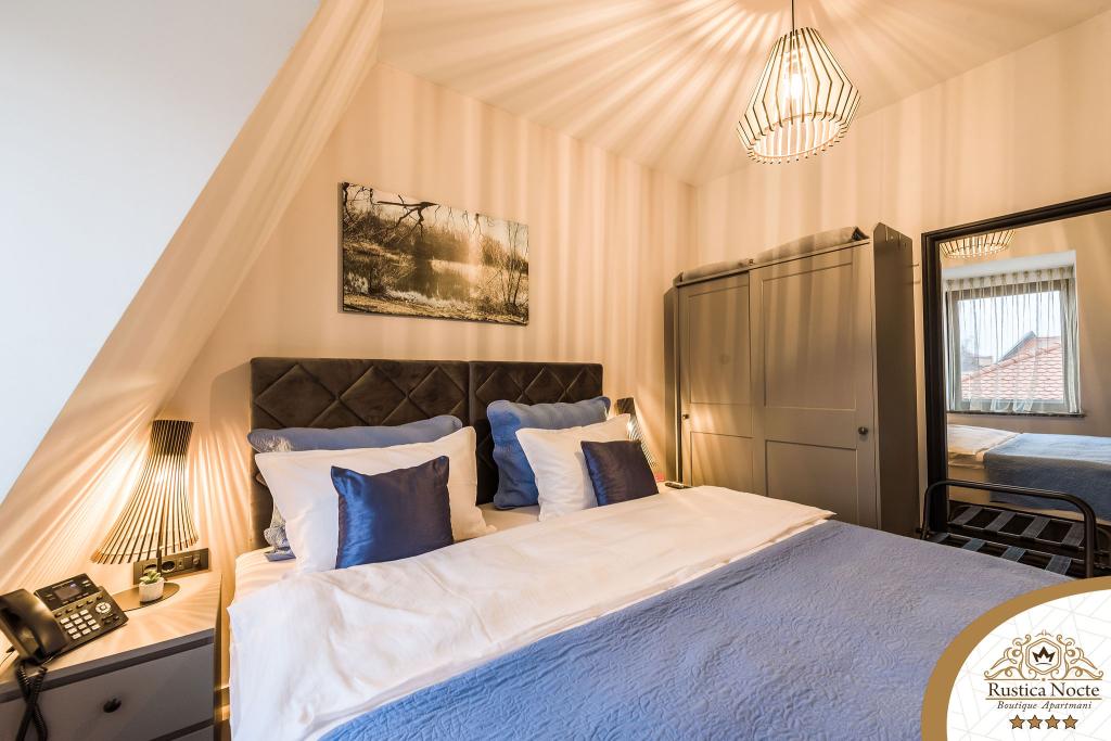 Szlavónia szívében, Pozsega sétálóövezetének elején, a Rustica Nocte Boutique apartmanok tökéletes helyet biztosítanak egy álomnyaraláshoz. Annak érdekében, hogy nyaralása a lehető legkellemesebb legyen, modern apartmanjaink csúcsminőségű felszerelést kínálnak, és külön kiemeljük az egész lakásra kiterjedő intelligens menedzsment rendszert, az ingyenes nagy sebességű Wi-Fi-t, valamint a vezetékes és vezeték nélküli internetet, King-size rugós ágyak, digitális széfek, ultra HD Ambilight televíziók 50 colos Netflix TV-vel, műholdas és helyi műsorok, valamint Ambilight LED világítás az ablakokon, szellőztetett és fűthető fürdőszoba és teljesen felszerelt konyha minden apartmanban. Minden apartmanhoz tartozik egy minibár alkoholmentes és alkoholos italokkal és rágcsálnivalókkal. Az apartmanokhoz egy gyereksarok is tartozik asztalokkal, játékokkal, kifestőkönyvekkel és játszószőnyegekkel. Mindezzel nagyon gondtalanul tervezheti a nyaralását.