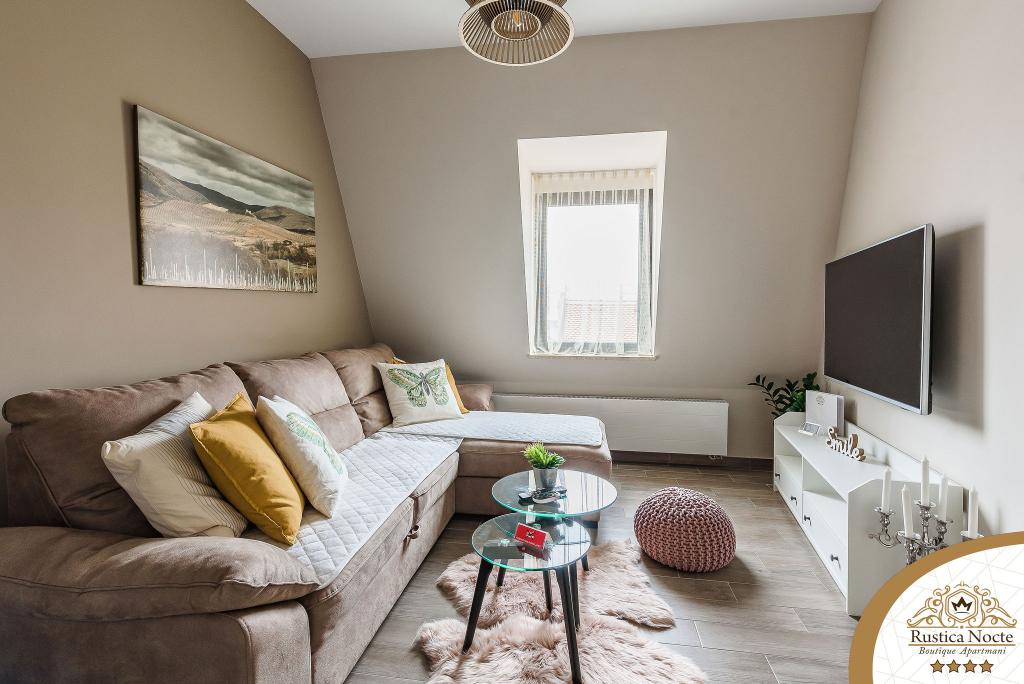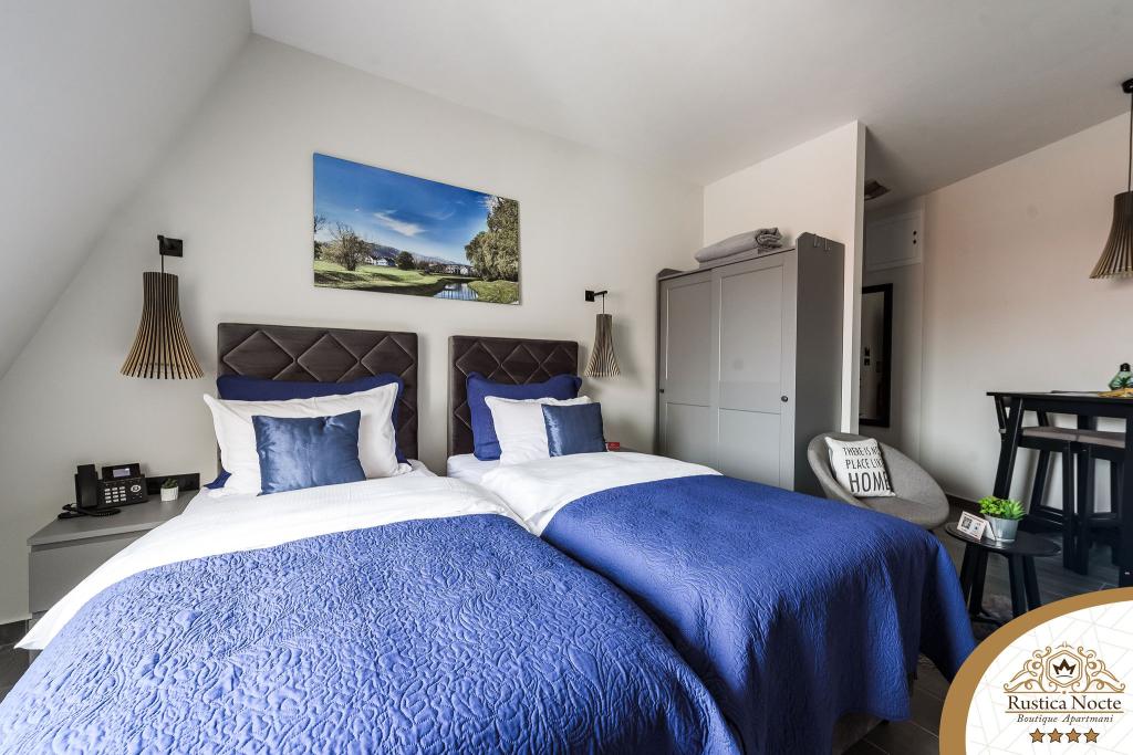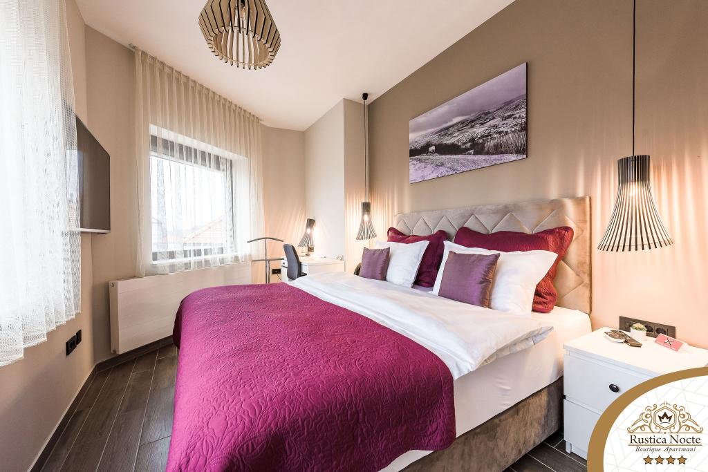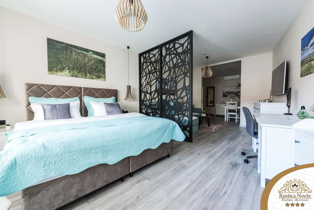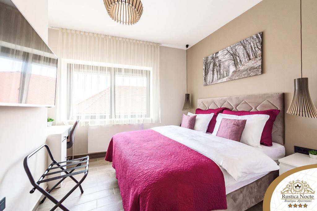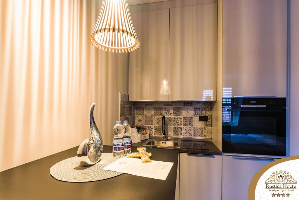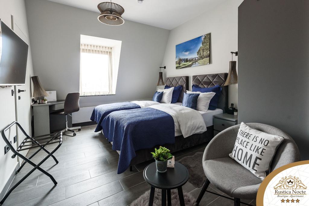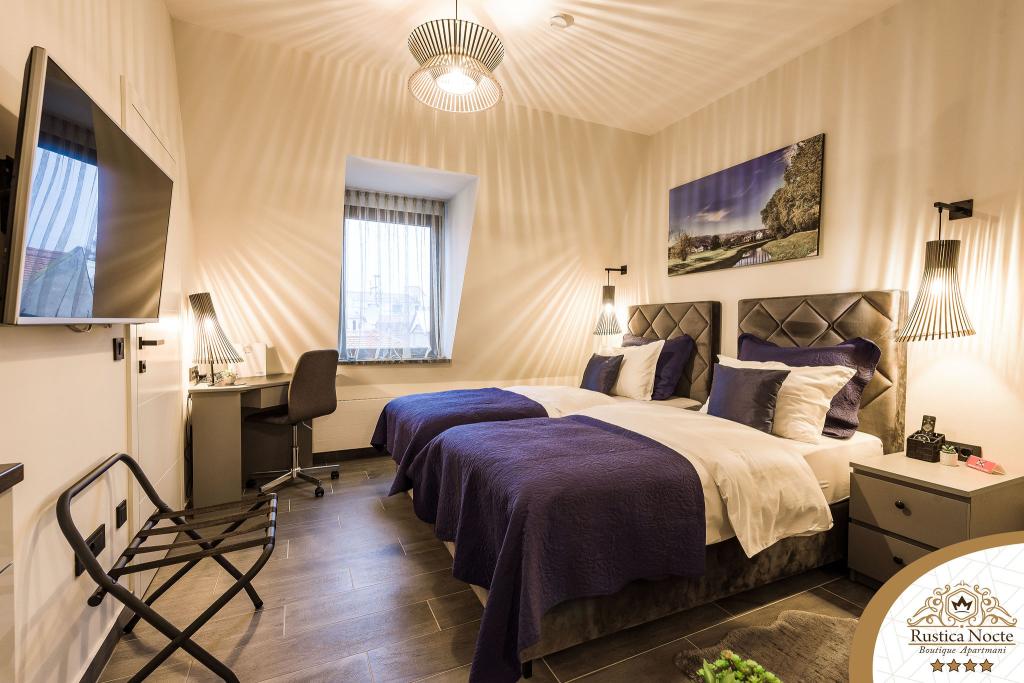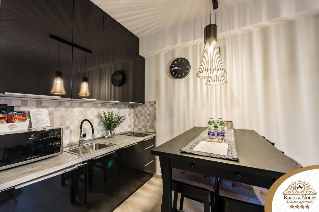 Szlavónia szívében, Pozsega sétálóövezetének elején, a Rustica Nocte Boutique apartmanok tökéletes helyet biztosítanak egy álomnyaraláshoz. Annak érdekében, hogy nyaralása a lehető legkellemesebb legyen, modern apartmanjaink csúcsminőségű felszerelést kínálnak, és külön kiemeljük az egész lakásra kiterjedő intelligens menedzsment rendszert, az ingyenes nagy sebességű Wi-Fi-t, valamint a vezetékes és vezeték nélküli internetet, King-size rugós ágyak, digitális széfek, ultra HD Ambilight televíziók 50 colos Netflix TV-vel, műholdas és helyi műsorok, valamint Ambilight LED világítás az ablakokon, szellőztetett és fűthető fürdőszoba és teljesen felszerelt konyha minden apartmanban. Minden apartmanhoz tartozik egy minibár alkoholmentes és alkoholos italokkal és rágcsálnivalókkal. Az apartmanokhoz egy gyereksarok is tartozik asztalokkal, játékokkal, kifestőkönyvekkel és játszószőnyegekkel. Mindezzel nagyon gondtalanul tervezheti a nyaralását.