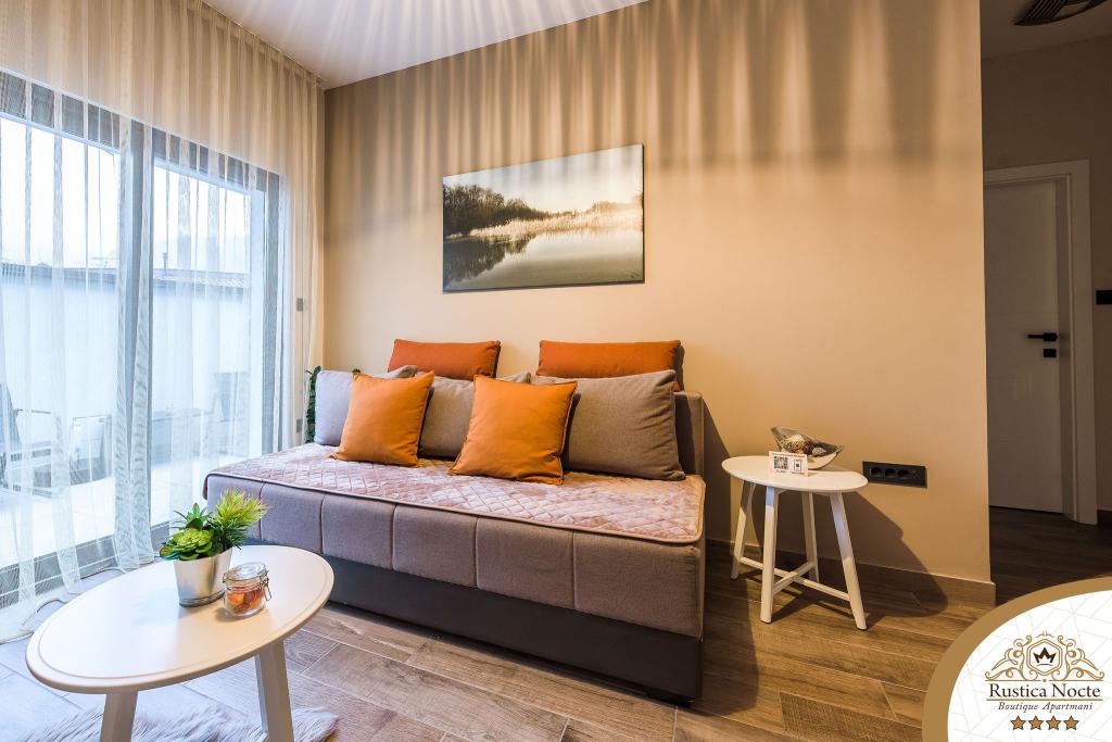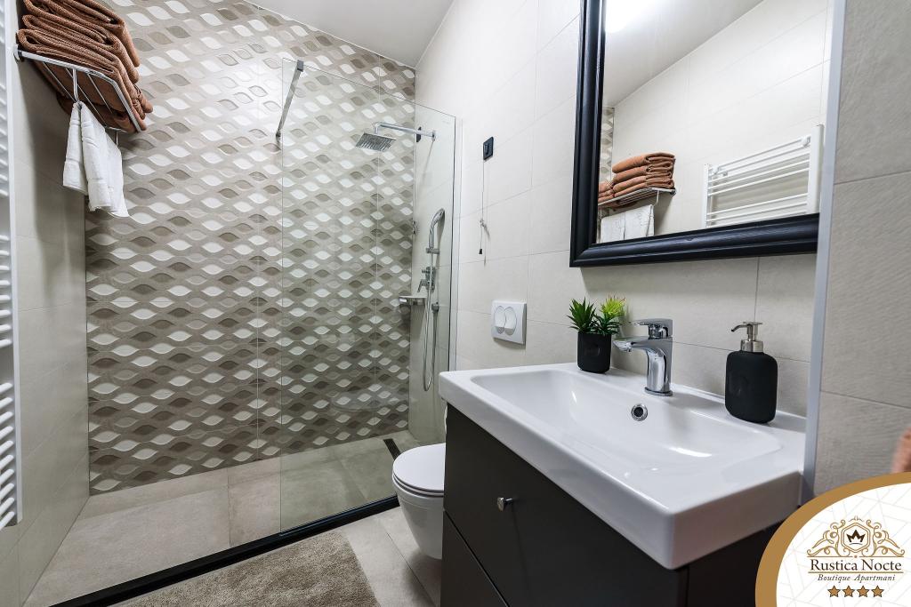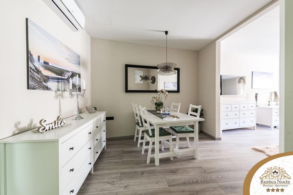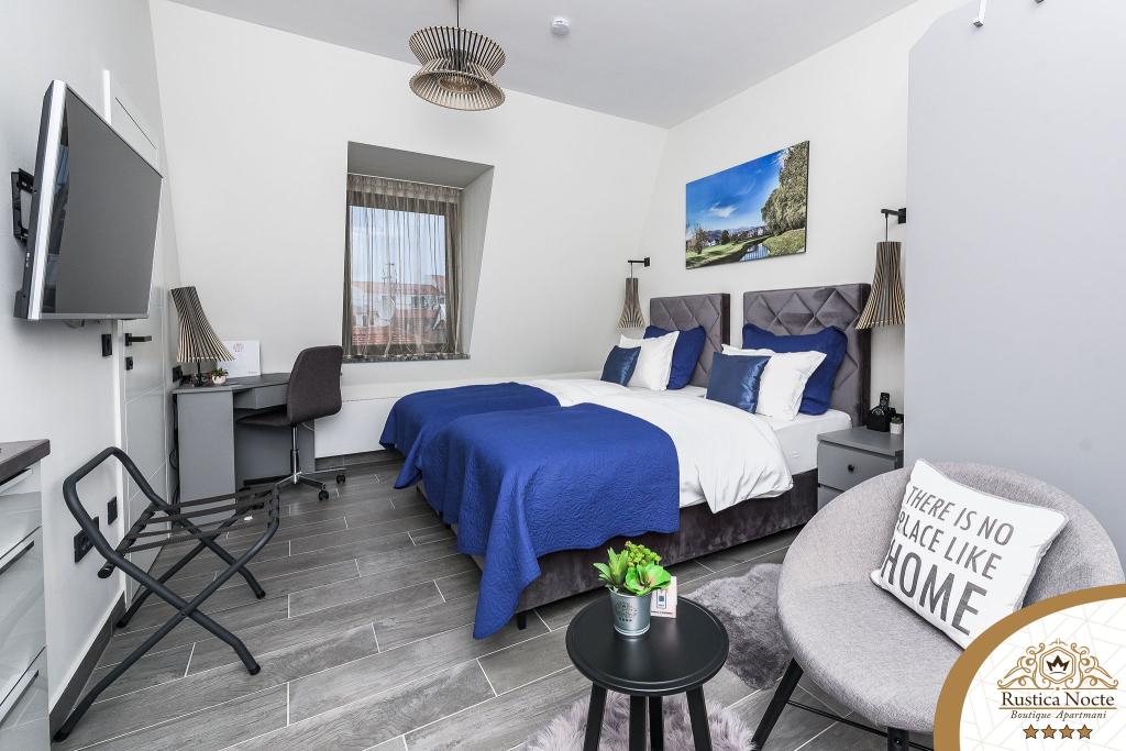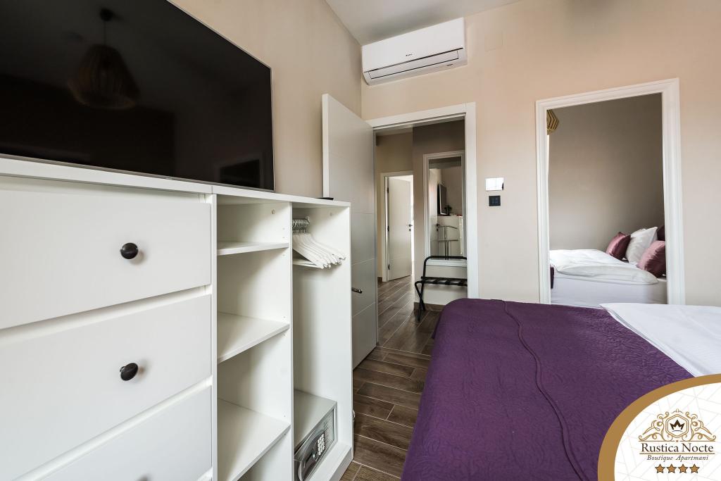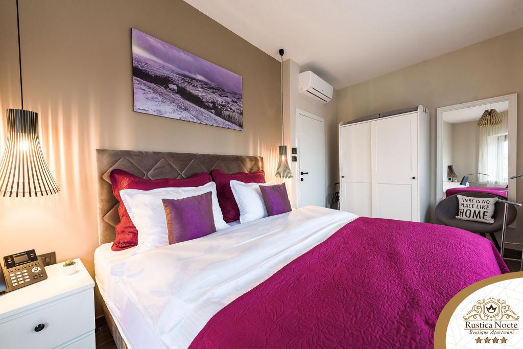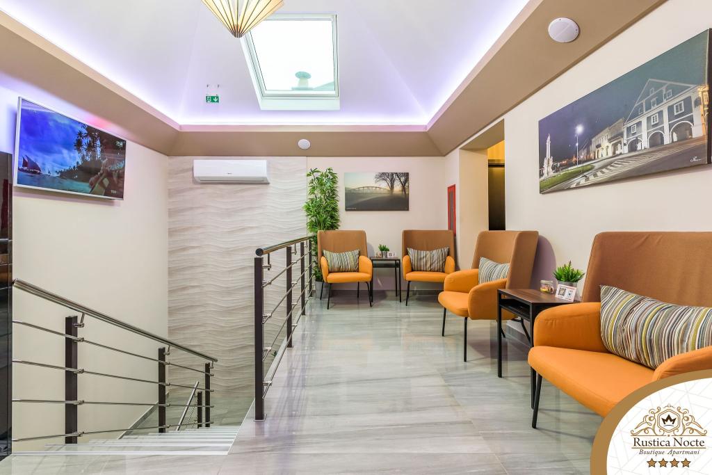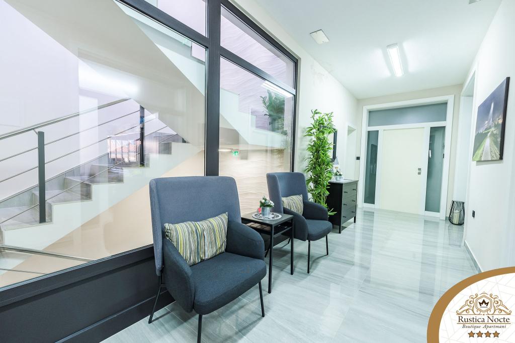 Szlavónia szívében, Pozsega sétálóövezetének elején, a Rustica Nocte Boutique apartmanok tökéletes helyet biztosítanak egy álomnyaraláshoz. Annak érdekében, hogy nyaralása a lehető legkellemesebb legyen, modern apartmanjaink csúcsminőségű felszerelést kínálnak, és külön kiemeljük az egész lakásra kiterjedő intelligens menedzsment rendszert, az ingyenes nagy sebességű Wi-Fi-t, valamint a vezetékes és vezeték nélküli internetet, King-size rugós ágyak, digitális széfek, ultra HD Ambilight televíziók 50 colos Netflix TV-vel, műholdas és helyi műsorok, valamint Ambilight LED világítás az ablakokon, szellőztetett és fűthető fürdőszoba és teljesen felszerelt konyha minden apartmanban. Minden apartmanhoz tartozik egy minibár alkoholmentes és alkoholos italokkal és rágcsálnivalókkal. Az apartmanokhoz egy gyereksarok is tartozik asztalokkal, játékokkal, kifestőkönyvekkel és játszószőnyegekkel. Mindezzel nagyon gondtalanul tervezheti a nyaralását.