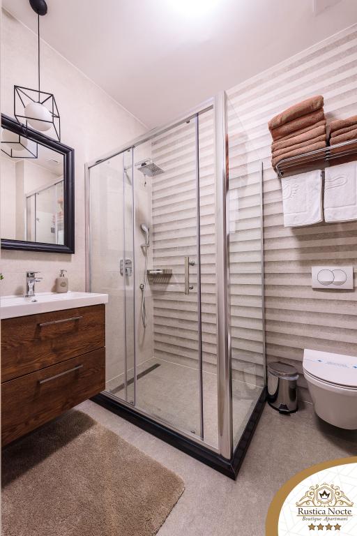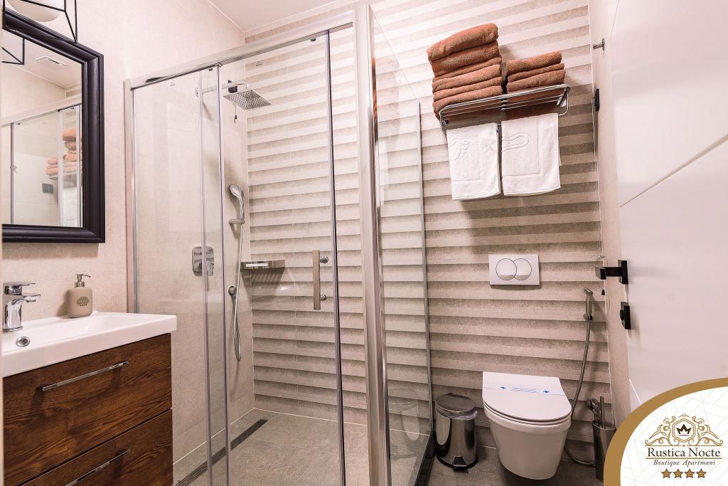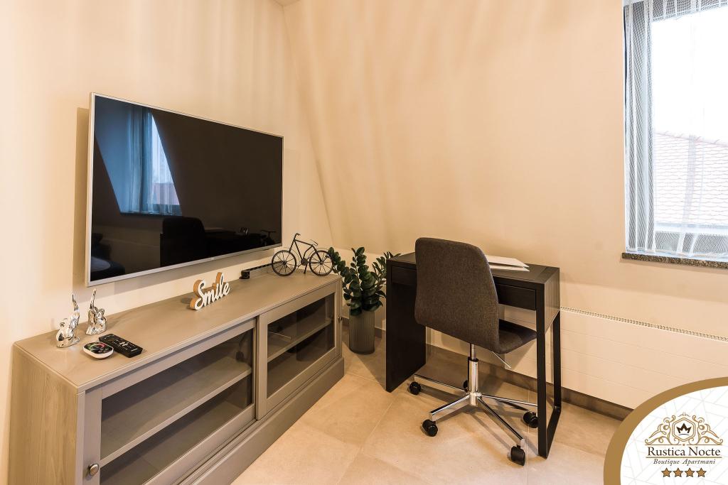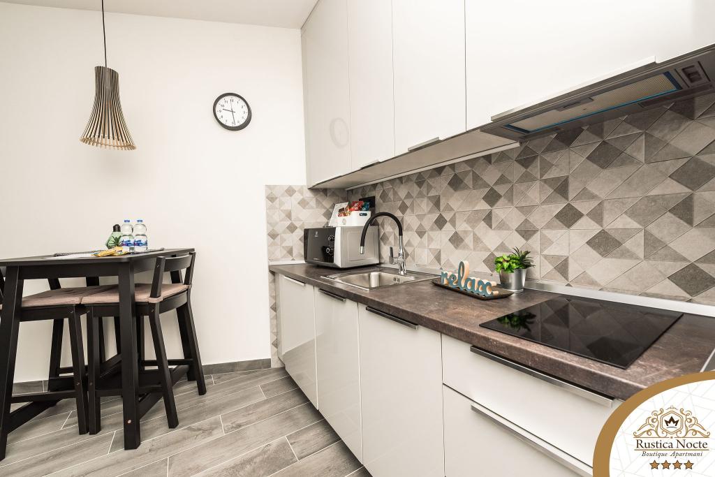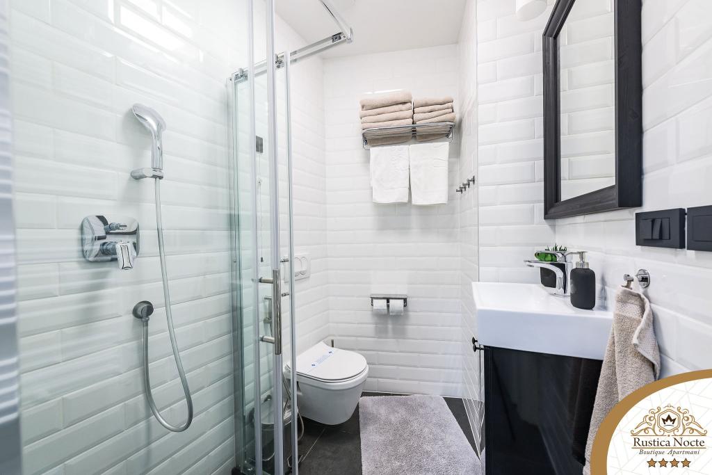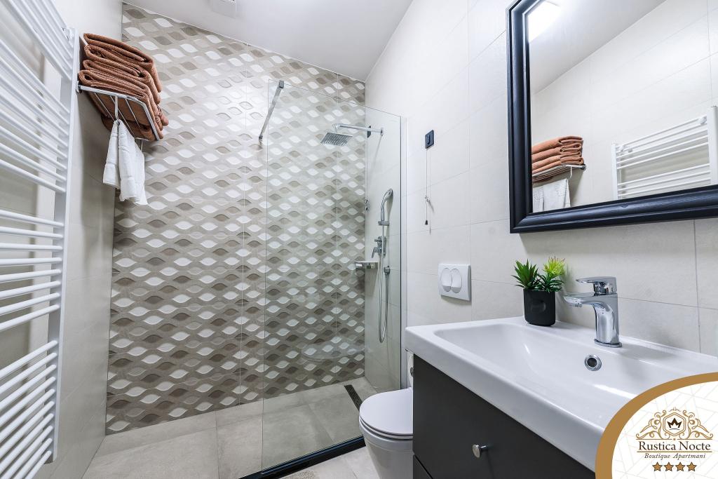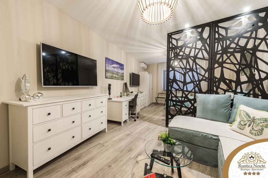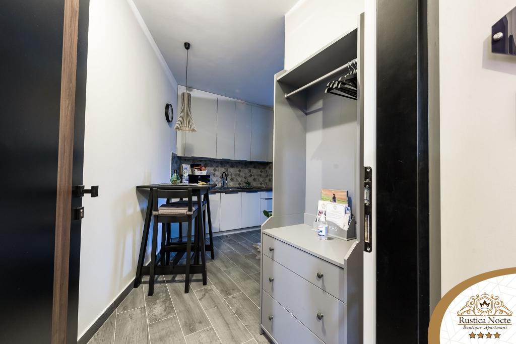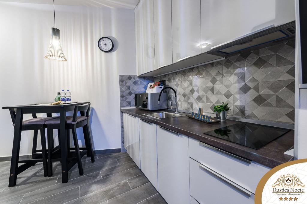 Szlavónia szívében, Pozsega sétálóövezetének elején, a Rustica Nocte Boutique apartmanok tökéletes helyet biztosítanak egy álomnyaraláshoz. Annak érdekében, hogy nyaralása a lehető legkellemesebb legyen, modern apartmanjaink csúcsminőségű felszerelést kínálnak, és külön kiemeljük az egész lakásra kiterjedő intelligens menedzsment rendszert, az ingyenes nagy sebességű Wi-Fi-t, valamint a vezetékes és vezeték nélküli internetet, King-size rugós ágyak, digitális széfek, ultra HD Ambilight televíziók 50 colos Netflix TV-vel, műholdas és helyi műsorok, valamint Ambilight LED világítás az ablakokon, szellőztetett és fűthető fürdőszoba és teljesen felszerelt konyha minden apartmanban. Minden apartmanhoz tartozik egy minibár alkoholmentes és alkoholos italokkal és rágcsálnivalókkal. Az apartmanokhoz egy gyereksarok is tartozik asztalokkal, játékokkal, kifestőkönyvekkel és játszószőnyegekkel. Mindezzel nagyon gondtalanul tervezheti a nyaralását.