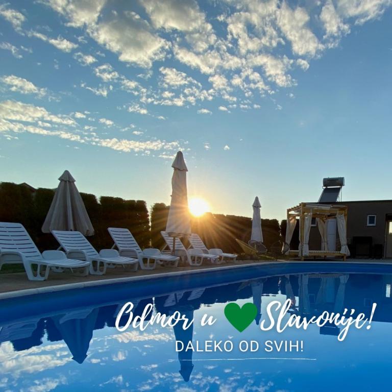 A Zlatni Lug nagyon kellemes hely a tartózkodásra és a pihenésre, mind a nyári, mind a téli hónapokban. 21 modern, fürdőszobás szoba áll rendelkezésünkre, melyek 49 fő befogadására alkalmasak. A nyári hónapokban 65 m2-es szabadtéri úszómedence, zuhanyzók, vizesblokkok, öltözők, ingyenes nyugágyak és törölközők állnak rendelkezésre a nyári hónapokban. Parkolóhelyek az udvarban biztosítottak. A szálláson belül étterem működik. A Zlatni Lug étterem teljes körű catering szolgáltatást nyújt minden ünnepséghez. Esküvőtől, születésnaptól, eljegyzéstől, keresztelőtől, érettségi évfordulótól kezdve a lánybúcsúkig vagy a lánybúcsúkig. Ünnepek lebonyolítását kínáljuk étteremben, birtokon a természetben, nyitott teraszon vagy a medence mellett. Az étterem maximum 150 férőhelyes, valamint lehetőséget biztosítunk szertartásokhoz egy nagy sátor felállítására is, maximum 300 férőhelyes.