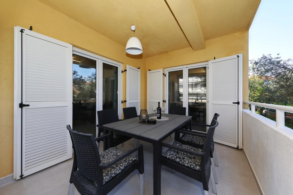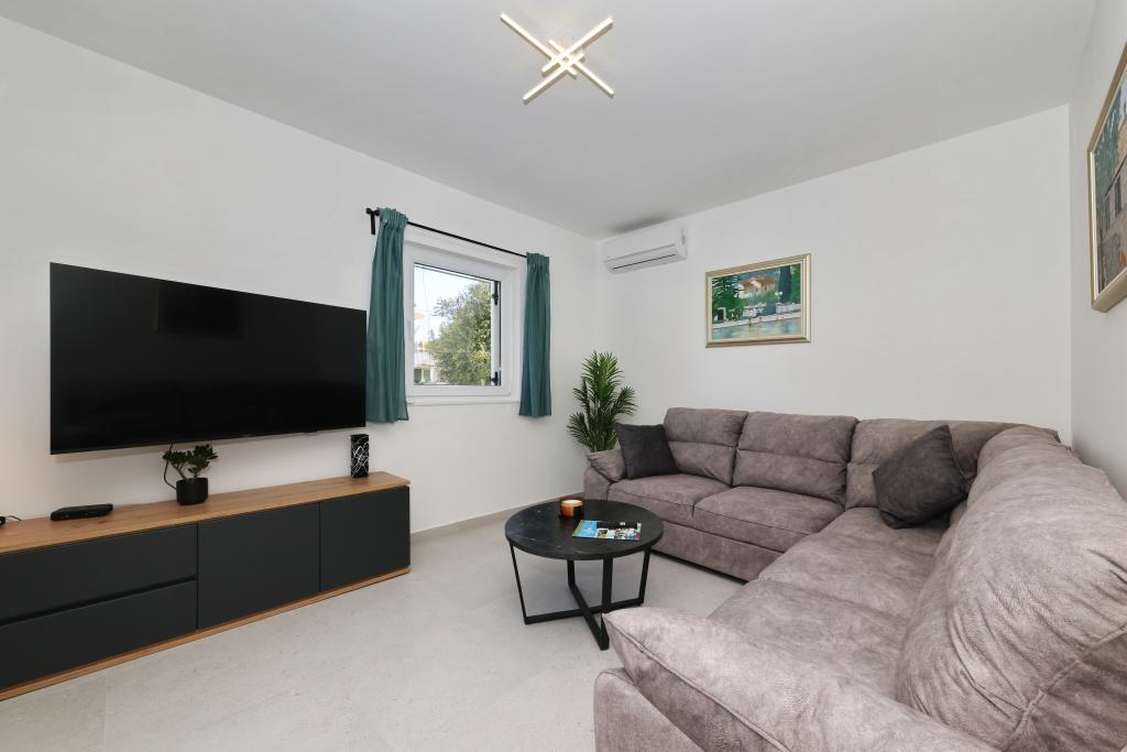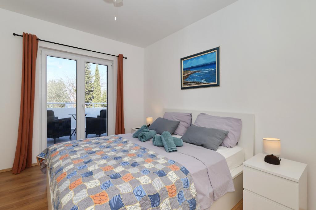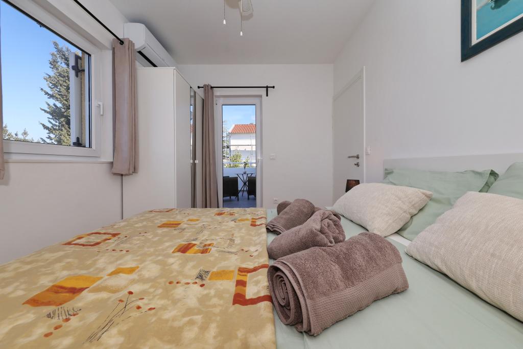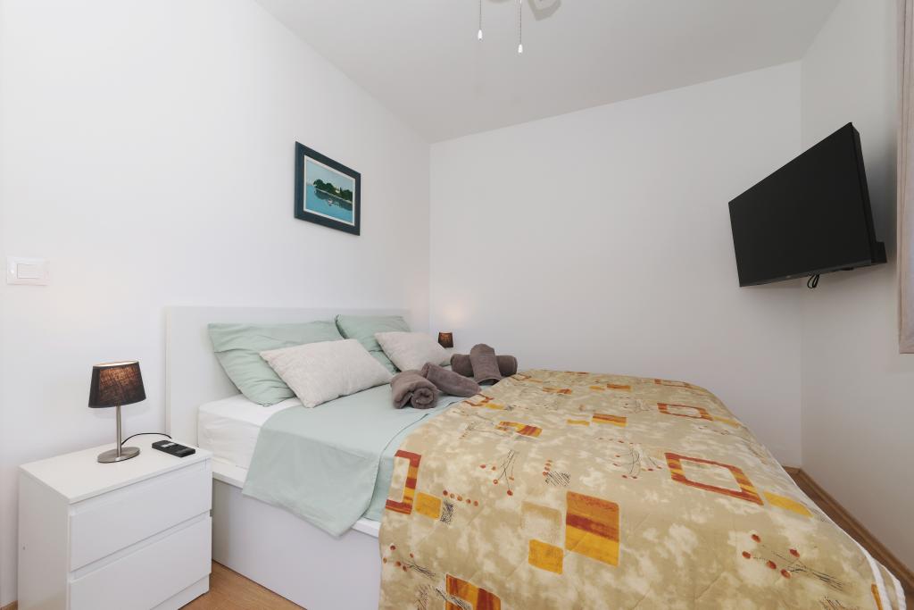 Teljesen felszerelt apartman két légkondicionált hálószobával, terasszal az első emeleten, loggiával a földszinten és saját parkolóval, Prek csendes részén, Jaz homokos strandja mellett.