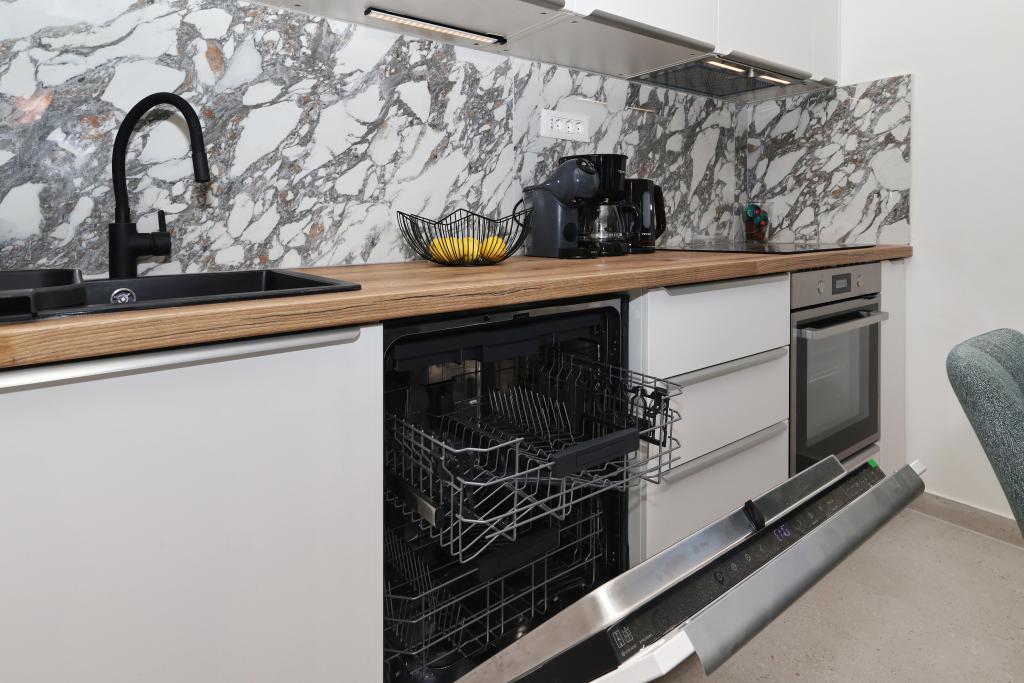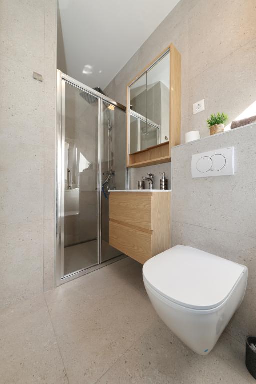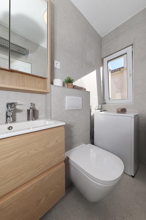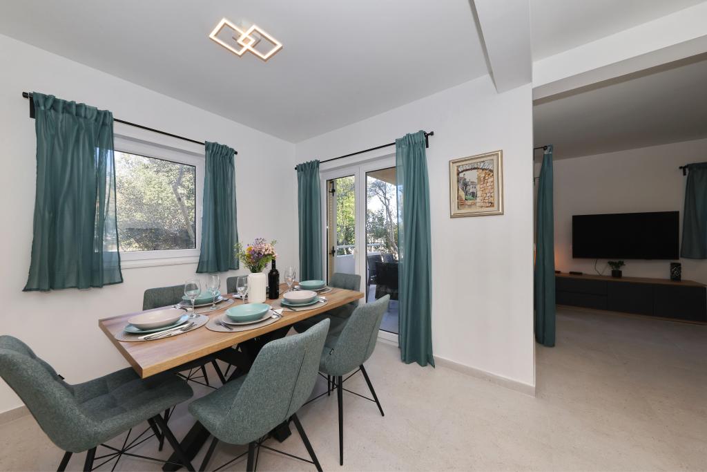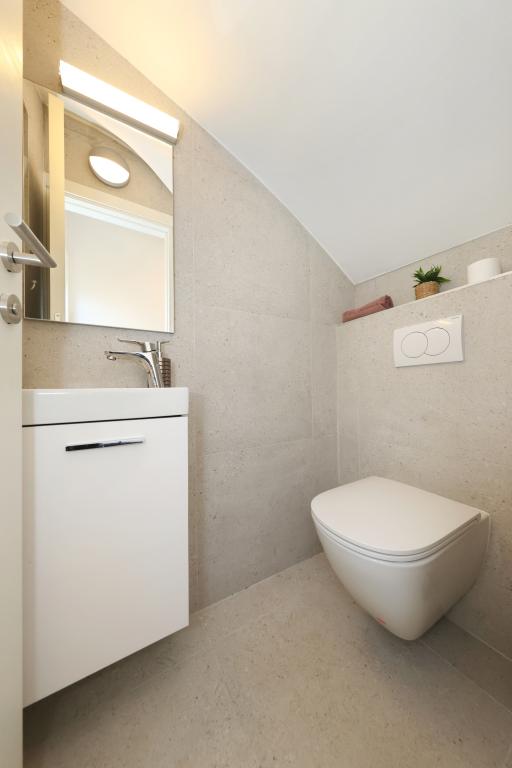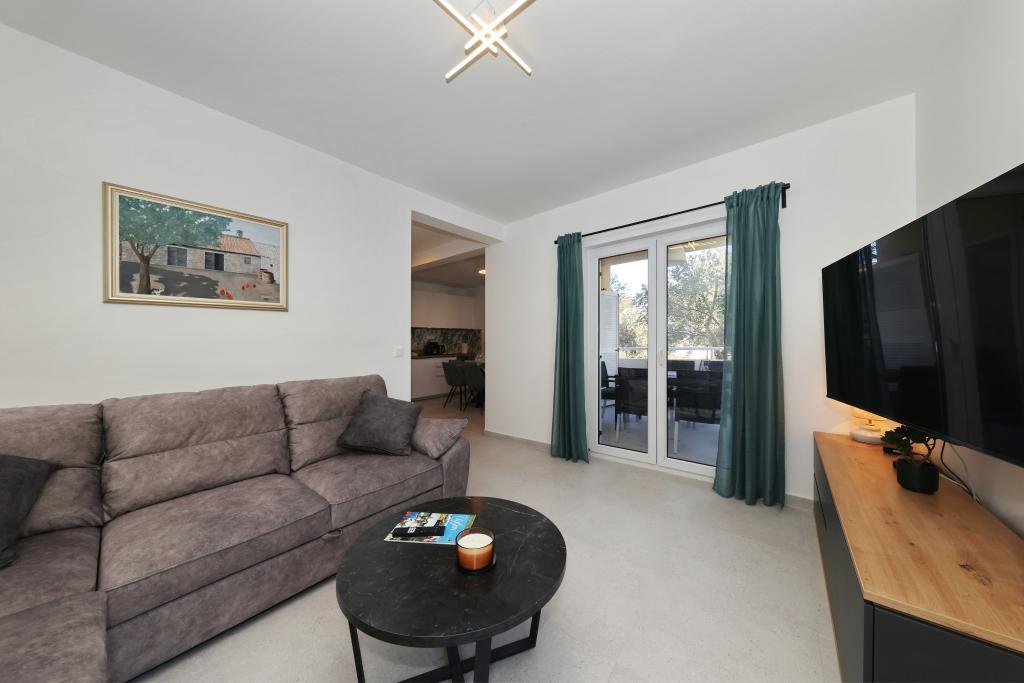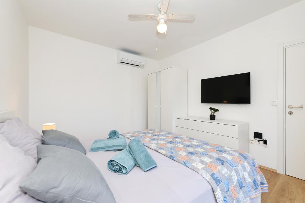 Teljesen felszerelt apartman két légkondicionált hálószobával, terasszal az első emeleten, loggiával a földszinten és saját parkolóval, Prek csendes részén, Jaz homokos strandja mellett.
