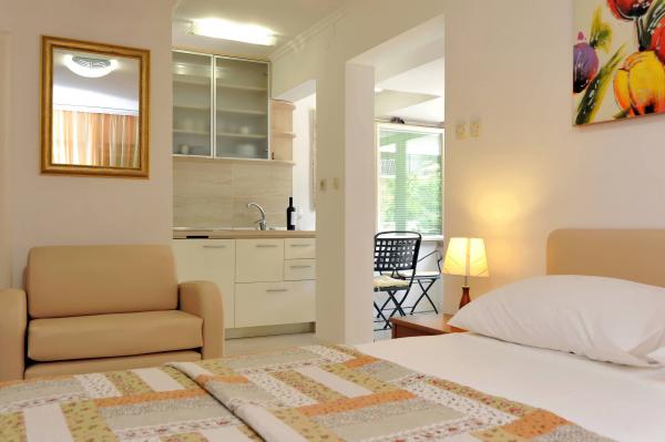 A Villa EDEN a környék egyik LEGFELJEBB HELYÉN található, közvetlenül a Jaz homokos strand mellett, Prekóban, Ugljan szigetén. A Villa EDEN apartmanjai nagyon kényelmesek, kivételes kilátással a tengerre, a teljes homokos strandra, a közvetlen közelben található zöld Školjić szigetre és Zadar városára. A Villa EDEN melletti strand tökéletes gyermekes családok számára, még a legkisebbek számára is. A Villa EDEN saját kerttel rendelkezik gyepfelülettel, pavilonnal és grillezővel. A közvetlen közelben, kb. 50 méterre számos kiváló minőségű vendéglátóhely található, köztük strandbár, pizzéria, étterem és cukrászda, így a vendégek igazán jól érezhetik magukat. A környék és Preko városa nagyon rendezett, jól karbantartott sétányokkal, kerékpárutakkal, jól karbantartott strandokkal és számos szolgáltatással, amelyek egy elsőrangú, zsúfolt úti célt határoznak meg. Zadar közelsége, a kirándulási lehetőségek és a gyermekfelügyeleti szolgáltatások felejthetetlenné teszik a nyári vakációt városunkban és a Villa EDEN-ben. Legyen a vendégünk, biztosak vagyunk benne, hogy legtöbben évek múlva is visszatérnek hozzánk