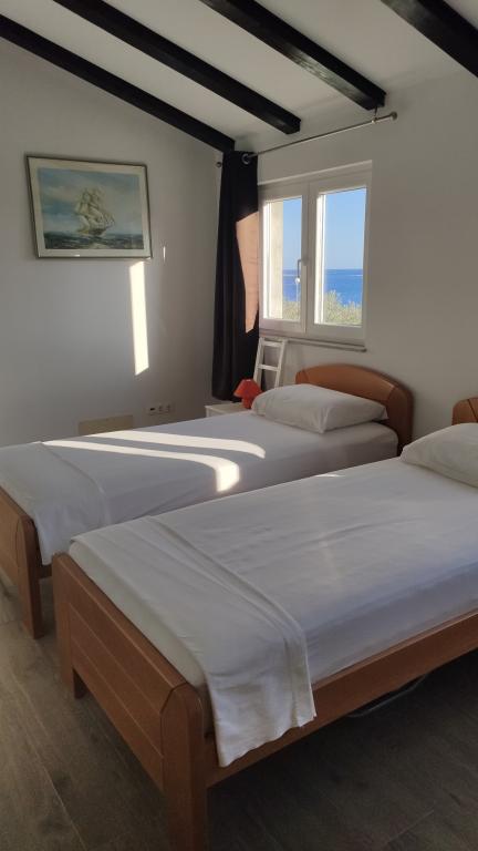 A Haus Gregot erősen ajánljuk: Kicsi, romantikusan berendezett ház fantasztikus kilátással a tengerre (közvetlenül egy romantikus templomban található) a teraszon és az erkélyen. A ház és a terasz jól felszerelt mindennel, amire szüksége van, olajfákkal és mediterrán hangulattal körülvéve. A víz ritka, ezért értékes a szigeten, és érdemes egy kicsit spórolni! A kis lehúzó egy elég hangos zümmögés, amit gyakran hallunk éjszaka (valószínűleg a vízpumpáktól/ciszternáktól jön), és a matracok is lehetne jobbak. Petar nagyszerű székekkel és napozóágyakkal berendezett a teraszon, és az egész tartózkodása alatt elérhető, vagy elviszi a kompon! Visszatérünk!