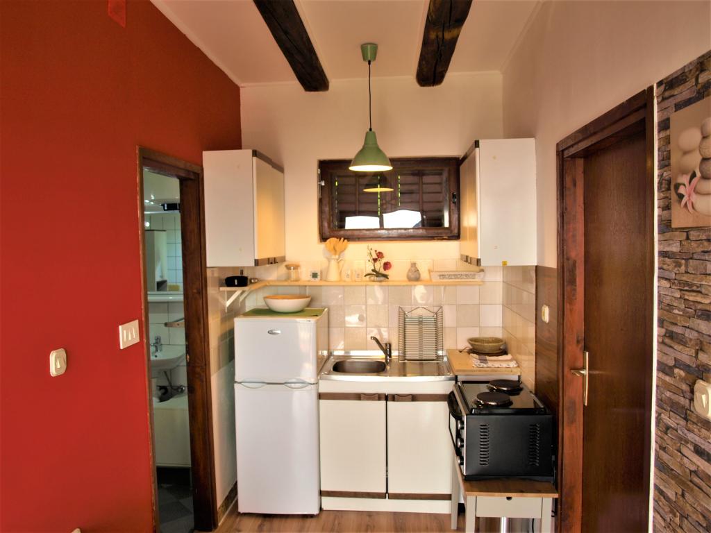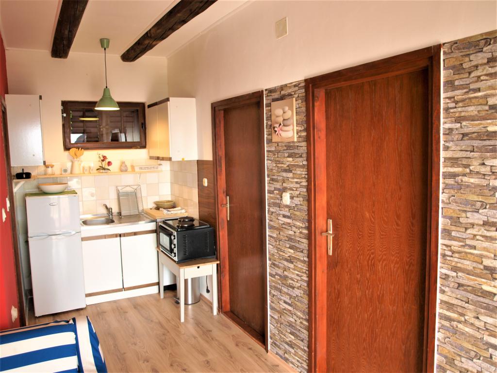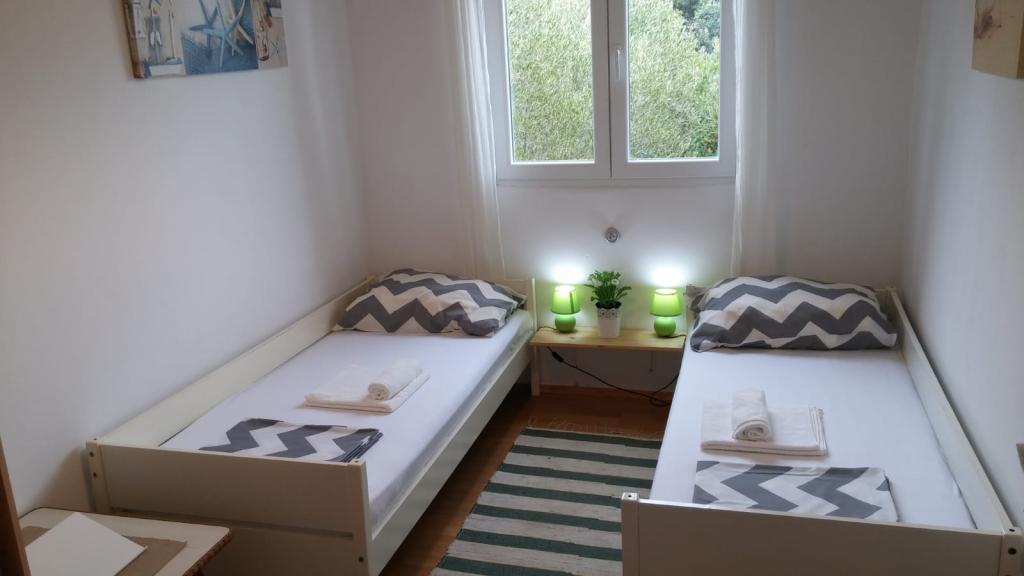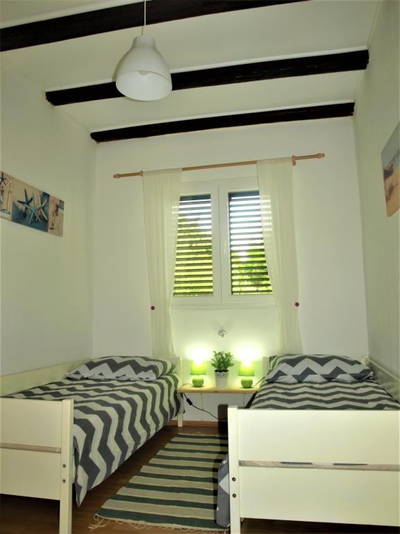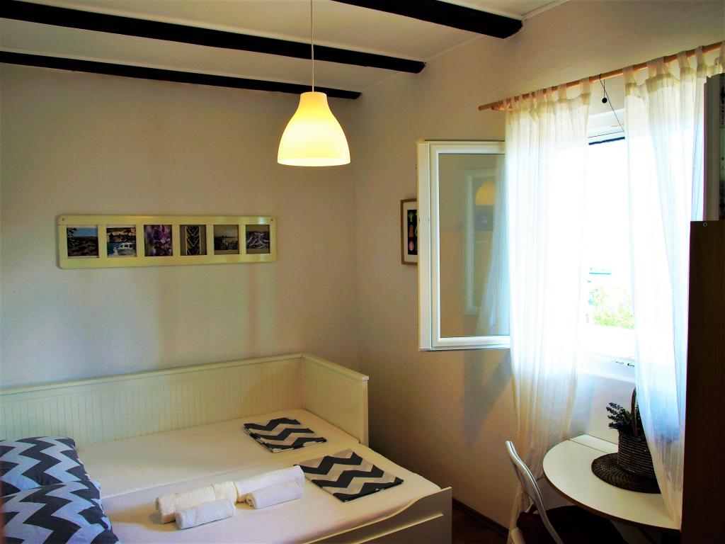 A nyaraló a tenger közelében található, gyönyörű kilátással a nyílt tengerre. Ideális nyaraláshoz és a rohanó életstílusból való kikapcsolódáshoz. Néhány perc sétára található a fő strand, körülbelül 200 méterre a bolttól, ugyanilyen távolságra az étteremtől és a fő kikötőtől, ahol a katamarán és a komp kiköt. Minden közel van, mégis a ház csendes helyen és kissé félreeső helyen található, mivel a sziget végén lévő utolsó ház mindössze 50 méterre van a tengertől. Az ingatlan független, egy olyan ház, ahol egyedül vagy (a szomszédok csak az egyik oldalon vannak, a másikon pedig senki sincs a sziget végén), két szobával rendelkezik, az egyik egy hálószoba két különálló ággyal, a második szobában pedig egy kétszemélyes ágy található. A házban nappali és konyha, valamint zuhanyzós fürdőszoba található. Két terasz is található tengerre néző kilátással. Az egyik nagy, több személyes asztallal, a második terasz pedig közvetlenül a házból közelíthető meg. A ház alapterülete 38 négyzetméter, tartozik hozzá egy 14 négyzetméteres fedett terasz és egy közvetlenül a ház bejárata előtti terasz, ahonnan kilátás nyílik a tengerre. A sziget Losinjból és Zadarból is megközelíthető (jadrolinija.hr vagy tp-line.hr). Ingyenes parkolás.