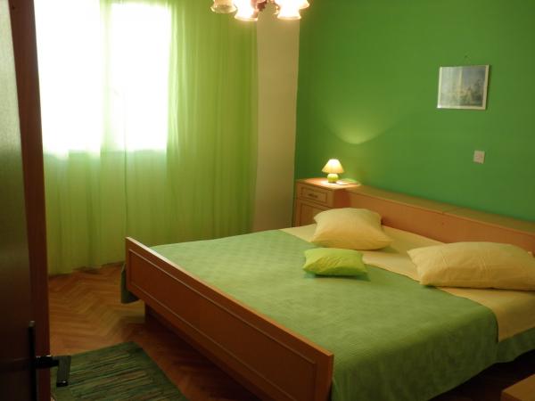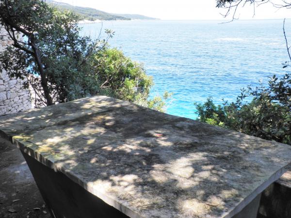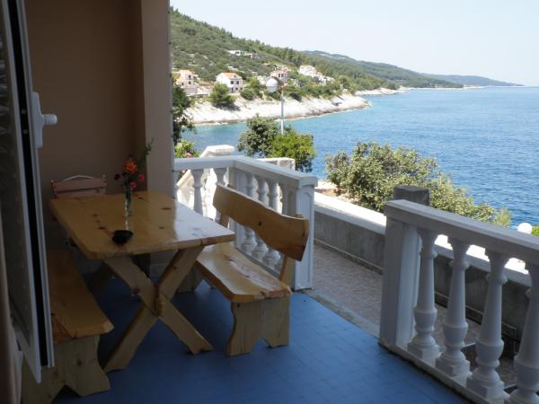 Ezek a kényelmes és tágas apartmanok Prigradica békés öbölben találhatók, Korcula szigetén. A tengerparti első sorban helyezkednek el, és saját strandjuk (10 m), egy különleges hely az árnyékban, kőasztalral és padokkal, ahol elrejthetik azokat, akik a napsütésben tartják a napot. A vásárközponttól 3 perces sétára, a kavicsos strandtól, sportpályától és éttermektől pedig 7 perces sétára található. Az első emeleti lakásban 3 hálószoba franciaággyal (2. emelet 2), konyha és nappali, fürdőszoba, terasz és kandalló. Két hálószoba tengerre néző kilátással és Hvar szigetén. 2 törölköző és ágynemű áll rendelkezésre, melyek hetente egyszer cserélődnek. A teraszokon, ahonnan a naplemente gyönyörű kilátást nyújt a naplementére, fából készült kerti bútorok találhatók. Az apartman felszereltsége: légkondicionáló, TV, műholdas antenna, hűtő és fagyasztó, gáz- és elektromos tűzhely, sütő, mikrohullámú sütő, kávéfőző, kenyérpirító, vasaló, hajszárító, mosógép, kerti grill