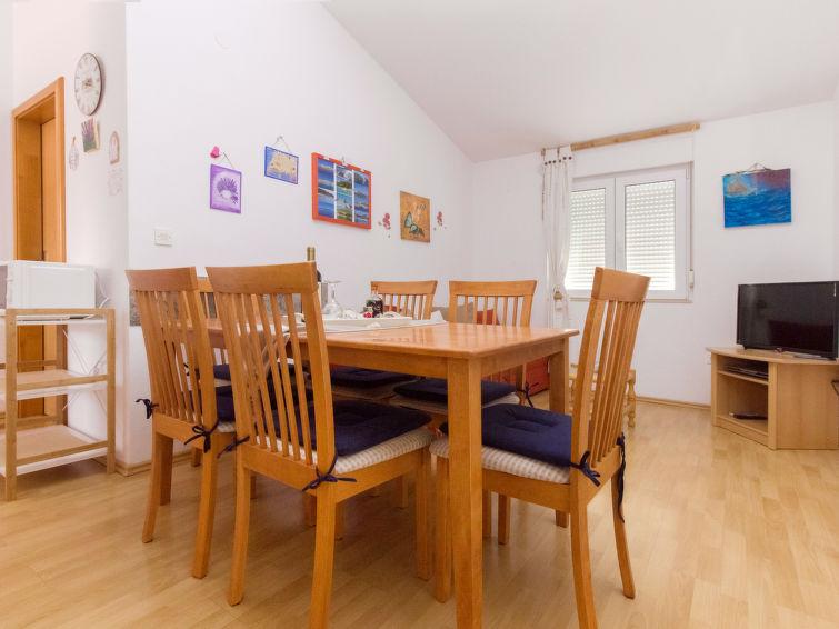 Kedves vendégeink! Az Anita apartman Dolacban található, Primošten közelében, tengerre és naplementére néző kilátással. Az apartman teljesen bútorozott. Az apartman (ID:70850) a legfelső emeleten található. Az apartman egy nappali/étkezőből áll kanapéval (150 cm), 1 hálószobából franciaággyal, egy konyhából (teljesen felszerelt), zuhanyzóból/WC-ből, egy bútorozott erkélyből és egy kijáratból az erkélyre. Foglalt ingyenes parkoló (1 autó). Parkolás az épületen belül. Közös használatra: Kerti zuhany, mosógép (felár ellenében), ingyenes WI-FI. Dolac (a ház helyszíne) 3 km-re található Primoštentől, 10 km-re Rogoznica központjától, 150 m-re a tengertől, bolt 500 m-re, szupermarket 3 km-re, étterem 150 m-re, strandbár 250 m-re, 3 kavicsos strand 200-300 m sugarú körzetben, sziklás strand 150 m-re, kerékpárút 150 m-re.