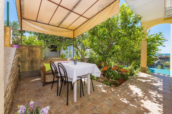 Családi ház három apartmannal csendes környezetben, fenyőerdőben, kilátással a kristálytiszta tengerre 10 méterre. Első sor a tenger felé. Minden vendég számára biztosított a parkolás és a szabadtéri grillezés, valamint a fenyőfák árnyékában pihenőhely. Minden apartman saját bejárattal rendelkezik, korszerűen felszerelt (műholdas, wi-fi) és tengerre néző terasszal rendelkezik. A tenger mentén egy 5 km hosszú sétány húzódik, amely alkalmas kocogásra, gyaloglásra vagy kerékpározásra, a falu hátországában pedig mountain bike utak találhatók. Két nemzeti park közelében találhatóunk: az NP Krka és az NP Kornati, valamint Šibenik, Trogir és Split városok közelében, amelyek az Unesco védelme alatt állnak. Kellemes és pihentető nyaralást kínálunk apartmanjainkban, és várjuk érkezését, a Marinov Mirela és Branimir család