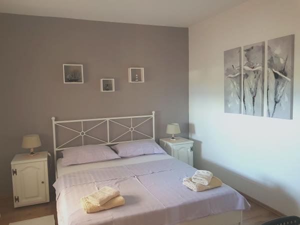 Nagyszerű élmény! Barátságos házigazdák telefonon és személyesen is, gyönyörű, tiszta, tágas apartman, gyönyörű terasz és többnyire minden pozitív