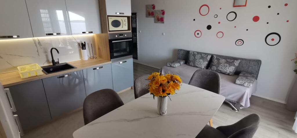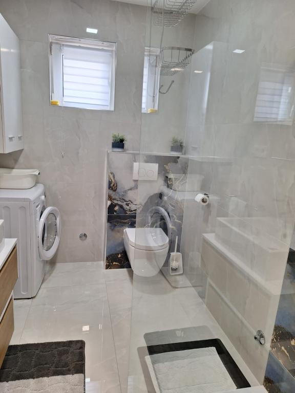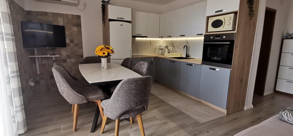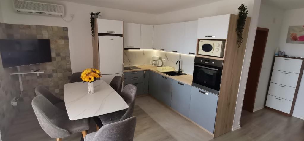 Köszönjük szépen Vera asszonynak és Franjo úrnak a vendégszeretetet, amit náluk tapasztaltunk. Nagyon kedvesek, segítőkészek és jó házigazdák voltak, a legjobbak, akikkel valaha nyaralásunkon találkoztunk. Nagyon jól éreztük magunkat a társaságukban és a szállásukban. Az apartmanok nagyon tiszták, modern berendezésűek, mindennel felszereltek, amire szüksége van, és gyönyörű kilátással a tengerre. A helyszín nagyszerű, egy kicsit emelkedőn fekszik, mindössze pár percre a gyönyörű strandtól és az óváros központjától. A parkolás az épületen belül található. A fénypont a vacsora volt az összes vendég számára, ami finom volt, grillezett hal és barbecue. Mindenkinek ajánlom, nem fogja megbánni, a szállás, a házigazdák és maga Primošten is gyönyörű. Köszönjük a csodálatos nyaralást, biztosan visszatérünk még.