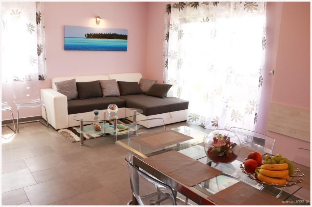 Apartman Zorka található Bilo, 5 km-re a gyönyörű turisztikai város Primosten, 20 km-re Sibenik, 35 km-re a Krka Nemzeti Park, valamint 40 km-re a Kornati Ez csak 100 m-re a tengertől, ahol gyönyörű sziklás és homokos strandok, öblök, és ott található a fenyőerdő A lakás épült 2015-ben, és modern bútorokkal és két parkolóhelyet. A mérete 100m2 12m2 terasz nyílik a tengerre.