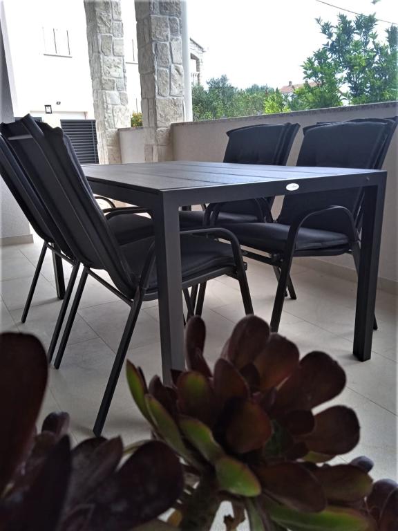 Az ALEN apartman (40 m2) egy kerttel körülvett családi ház földszintjén található. Található benne 1 nagy hálószoba (20m2) franciaággyal, pótággyal és kiságy, konyha nappalival 135 x 190 cm-es kanapéval, fürdőszoba WC-vel és egy gyönyörű, 12 m2-es fedett terasz az apartman előtt. Vadonatúj és mindennel felszerelt, ami egy kellemes nyaraláshoz kell: klíma, WI-FI Internet, SAT-TV, mikrohullámú sütő, vízforraló, kenyérpirító, kávéfőző, grill. Az ár tartalmazza: ágynemű, törölköző, konyharuha és törölköző (7 naponta cserélve), villany, víz, WiFi internet, idegenforgalmi adó. Az apartman 300 méterre található a gyönyörű homokos strandtól és 100 méterre a szupermarkettől.