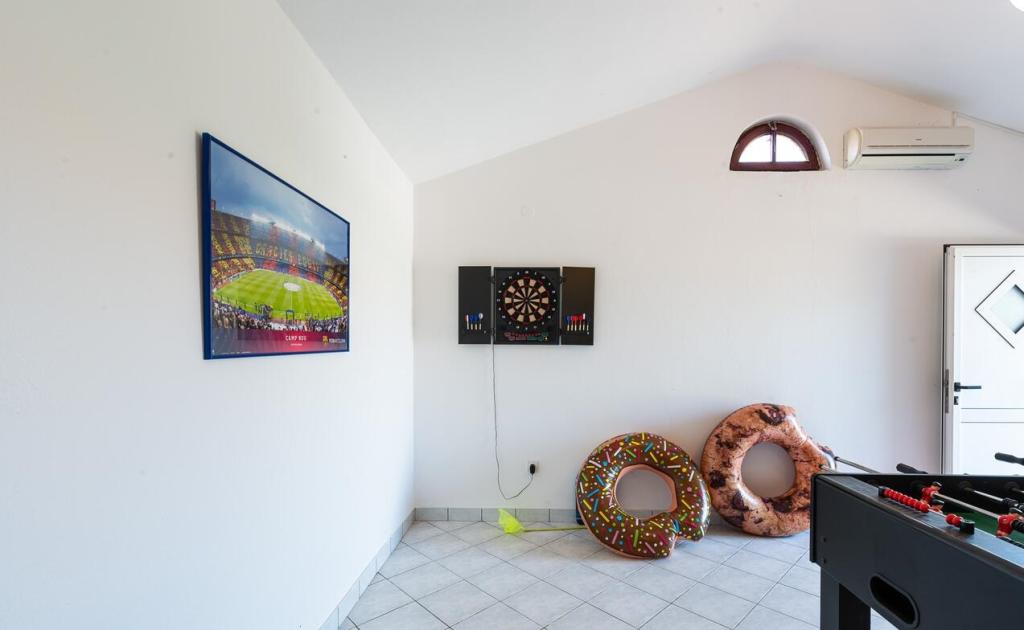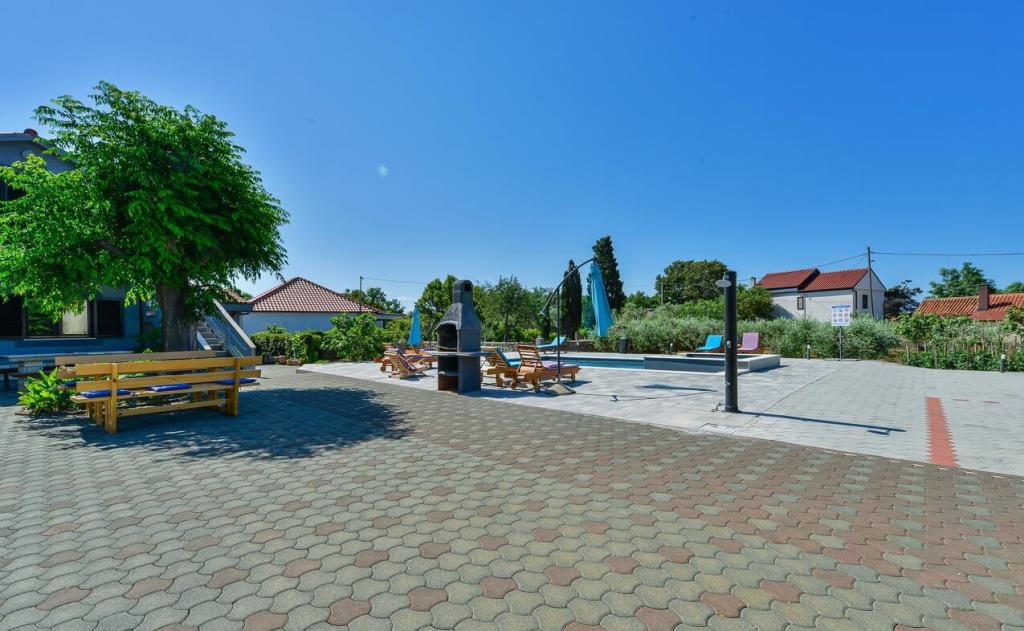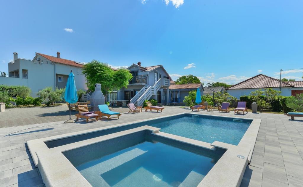 Az apartmanok 300 m-re találhatók a tengertől. Csendes helyen találhatók, olajfákkal körülvéve, úszómedence, jacuzzi, grill, játékterem darts-csocsóval. Nagy udvar, bekerített...