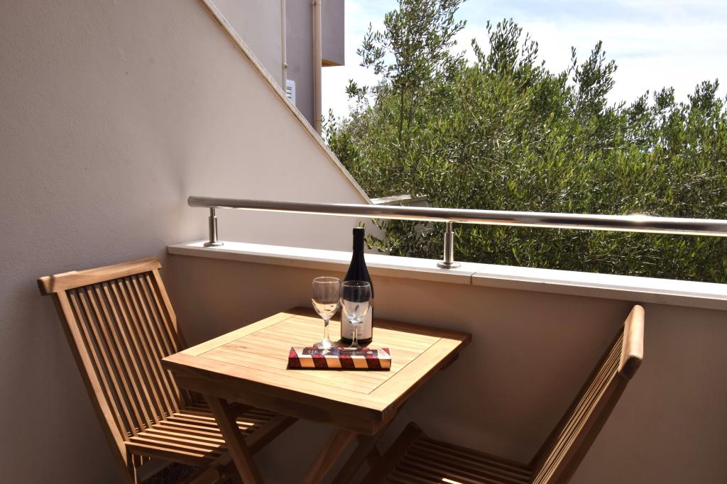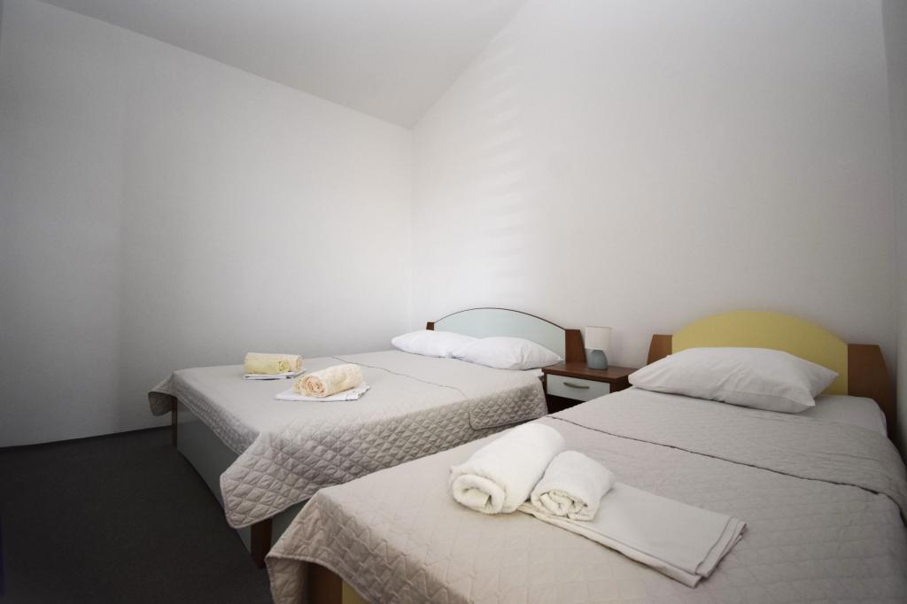 A ház a tengerhez közeli második sorban található, csendes lakóövezetben. Minden apartmanhoz erkély tartozik, közvetlen kilátással a tengerre. A közvetlen közelben sportpálya és gyerekpark is található.