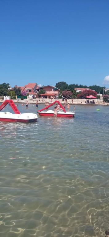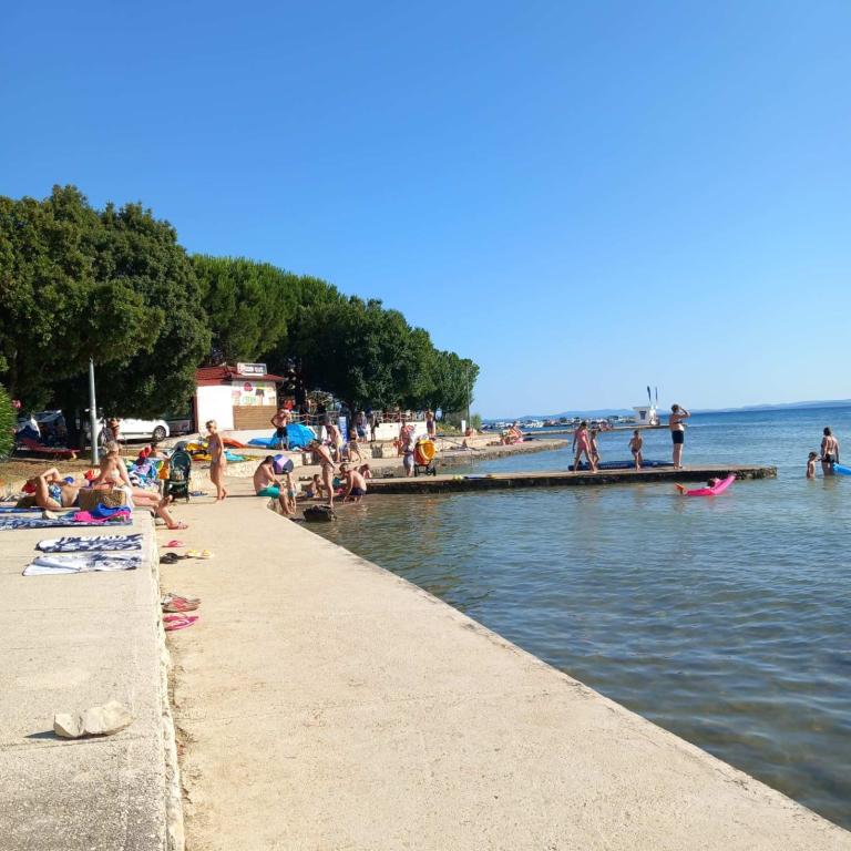 Takac apartmanok egy csendes homokos öbölben között Škrapavac Privlake és üdülőhelyek Zaton (1km). A Zadar található 16km. Házunk található 60m-re a strandtól. Minden a mi apartman teljesen felszerelt külön bejárattal, terasszal, saját parkolóval, és van egy barbecue.
