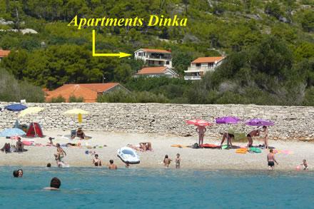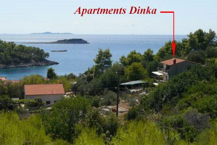 A Dinka apartmanok a Prižba öbölben találhatók, csendes helyen, mindössze 10 percre a strandtól. (200 m) gyalog a híres kavicsos strandtól. Minden apartman gyönyörű kilátást nyújt a közeli szigetekre és a Lastovo-csatornára. Teljesen és modern berendezéssel, az udvarban grill és parkoló található. A közelben van egy bolt, éttermek, kávézó. Ha családi nyaralást keres, a csendben, gyönyörű kilátással a kristálytiszta tengerre, akkor jól fogadjuk. Bármely információért forduljon hozzánk.