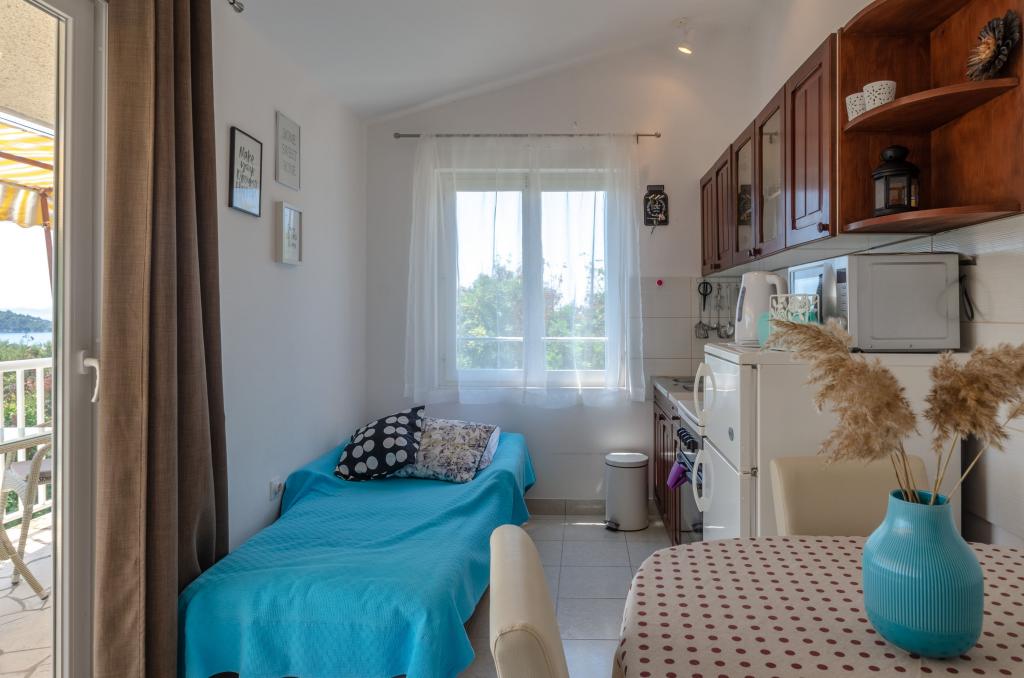 A nagy ünnep! Minden, azt a hirdetést igaz. A tulajdonos és az összes hazai nagyon figyelmes, barátságos és vendégszerető ... A lakás tiszta, rendezett és kényelmes, igazán különleges kilátás nyílik a nyílt tengerre, a szigetekre. Priporočava mindazoknak, akik szeretnének pihenni, és szintén hajlandó felfedezni ezt a gyönyörű Korcula szigetén.